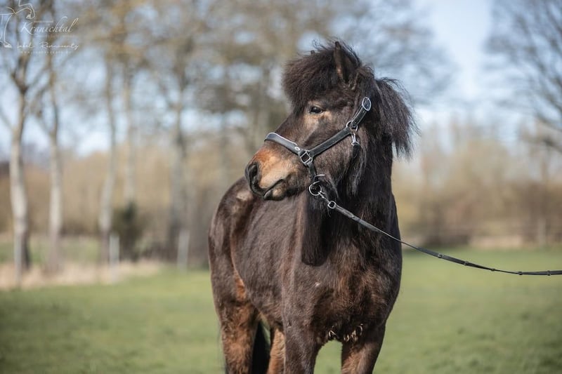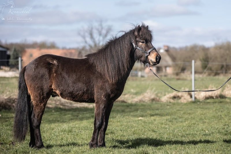 Beschreibung: Galdur vereint die Stärken von gleich drei herausragenden Hengsten unserer Zucht in sich: ein sehr gutes Exterieur mit guten Proportionen und schräger Schulter, wie sein Vater Merkur, den gelassenen und freundlichen Charakter seines Großvaters Hjalti sowie den lockeren, sprudelnden Tölt seines Urgroßvaters Laxness. Exterieur: Ein kräftiger, mittelgroßer Jungwallach mit sehr guter Drittelung und ausgeprägten Gelenken Charakter: Gelassen und unkompliziert, dem Menschen zugewandt, mit ruhigem Temperament. Gänge: Galdur zeigt sich 4-gängig mit viel natürlichem, immer taktklarem Tölt in verschiedenen Tempi. Vater: Merkur ist ein sehr imposanter Fünfganghengst. Er ist ein sehr großer Dunkelbrauner mit langem Behang. Bereits 5-jährig absolvierte er seine erste Fizo und gewann das Zuchtchampionat in Zachow. 1 Jahr später schloss er in Berlar mit einer Gebäudenote von 8.48 und Reiteigenschaften mit 8.24, Gesamtnote 8.34 ab. Weiter war Merkur F1 und T2 LK1 qualifiziert und hatte bis zu 7er Noten in der T2. Pflegezustand: Kerngesundes Fohlen, ekzemfrei und aus ekzemfreien Elternlinien