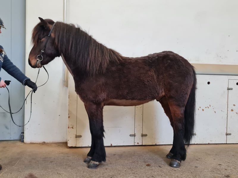 Verkaufe Islandpferd – eleganter Wallach, geb. 2021 Zum Verkauf steht ein schöner Islandpferde-Wallach, geboren 2021. Mit seinem dunklen Braunton und seinem kompakten Stockmaß von 135 cm ist er ein echter Blickfang und ideal für kleine Reiter, die ein zuverlässiges Islandpferd mit gutem Tölt suchen und Freude daran haben, sich ihr eigenes Reitpferd weiter auszubilden. Aron ist Fünfgänger, und zeigt sich im Umgang stets freundlich und gelassen und will seinem Reiter unter dem Sattel gefallen. Sein weicher, taktklarer Tölt und sein angenehmer Charakter machen ihn zu einem idealen Freizeitpartner. Beide Eltern sind fünfgängig geprüft. Aron hat auch Pass der aber dem Alter entsprechend noch nicht trainiert ist. Aron ist altersentsprechend ausgebildet, und zeigt sich in der Halle unter dem Sattel sowie in der Bodenarbeit, und im Gelände brav. Bei Interesse oder weiteren Fragen stehe ich gerne für eine Besichtigung und Probereiten zur Verfügung. Dieses Islandpferd ist bereit, neue Abenteuer mit seinem neuen Besitzer zu erleben!