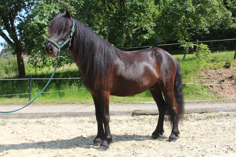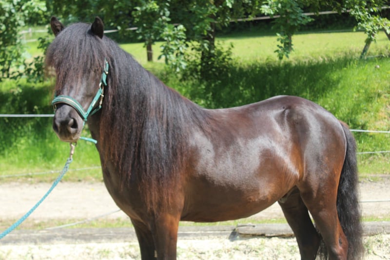 Update 16.09.2025: Fylkir wird derzeit eingetöltet und zeigt sich dabei sehr talentiert. Außerdem hat er zwischenzeitlich erfolgreich Erfahrung als Führpferd/Reitpferd beim Handpferdereiten sammeln können. Mittlerweile dürfte er sich auch für Jugendliche mit fortgeschrittener Reiterfahrung eignen. Fylkir von Oberbilstein (DE2020143844) Wallach, geb. 08.05.2020, Rappe, Stm. Ca. 1.42 m M: Flikka von Oberbilstein MVV: Hlynur frá Kjarnholtum I V: Alskær von Haselrode VV: Kóngur frá Wetsinghe Junger Allrounder in Barbieoptik Fylkir ist ein 5-jähriger Rappwallach mit dem liebenswertesten Charakter, den man sich nur wünschen kann. Er ist menschenbezogen, aber keinesfalls aufdringlich und immer gut gelaunt. Er strahlt sehr viel Ruhe aus und überzeugt mit seiner positiven Ausstrahlung. Seit Anfang des Jahres befindet er sich in der Grundausbildung. Hauptsächlich wird er im Gelände geritten, wobei er sowohl in der Gruppe als auch alleine oder in Begleitung von Hunden immer händelbar und entspannt ist. Des Weiteren wird er auch selbstverständlich regelmäßig longiert (Roundpen, Reitplatz, Doppellonge) und kennt Bodenarbeit oder auch „nur“ spazieren zu gehen. Er hat mittleres Temperament und ist an einem Punkt, wo man ihn sowohl in die Richtung „sportlich-spritzig“ als auch für ruhige Feierabendritte am langen Zügel weiter ausbilden kann. Für beides wird er sich gut eignen. Fylkir ist derzeit auf dem Stand eines Pferdes, das in Summe etwa drei Monate geritten ist. Er wird etwa zwei- dreimal wöchentlich gearbeitet. Die schonende Ausbildung tut ihm sehr gut und er lernt dadurch schnell. Fylkir ist voraussichtlich viergängig veranlagt, Pass wurde noch nicht gesehen, könnte aufgrund seiner Abstammung aber in ihm schlummern. Seine Grundgänge haben eine gute bis sehr gute Qualität. Im Schritt und im Trab hat er große hochweite Bewegungen und sein Galopp ist sicher, schwungvoll und auf dem Reitplatz und im Gelände geregelt zu reiten. Dabei ist er weich zu sitzen. Er zeigt vielversprechende Töltansätze unter dem Reiter, ist aber noch nicht eingetöltet. Wie bereits beschrieben, kann er zukünftig sowohl Freizeitreiter glücklich machen als auch in mittelschweren Sportprüfungen glänzen. Jungpferdetypisch wünscht er sich noch etwas Sicherheit und Anleitung vom Reiter zu bekommen, sodass wir uns einen eher erfahrenen Reiter für ihn wünsche, aber auch Jugendliche mit Reiterfahrung können ihn sicherlich jetzt schon reiten. Er ist gesund und munter, ekzemfrei, regelmäßig entwurmt und Tetanus geimpft, ist brav beim Hufschmied und beim Hänger fahren. Er steht im Besitz seiner Züchterin und kommt daher aus erster Hand. Gerittene Fotos/Videos sind derzeit noch nicht vorhanden. Ein Kennenlernen und Probereiten ist jederzeit möglich. Standort 51789 Lindlar