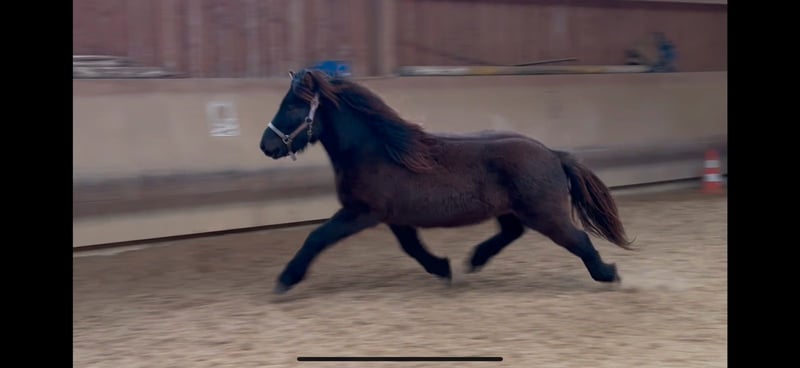 Apollo von Möllenbronn ist ein sehr freundlicher und sympathischer 5jähriger etwas kleiner Viergangwallach. Apollo ist angeritten, zeigte sich dabei sehr motiviert und lernt schnell. Er war bisher beim Anreiten immer wirklich brav und kennt schon Sattel, Trense, Reiter und wird aktuell in den Grundgangarten in der Halle und auf dem Reitplatz geritten. Er hat sehr viel Tempovarianz im Trab mit weiten Bewegungen. Tölt zeigt er immer wieder im Übergang. Er steht aktuell in einer gemischten Herde und ist dort und auch im Umgang sehr unkompliziert. Apollo ist regelmäßig geimpft und entwurmt und gesund. Sein Vater ist Glæsir von der Igelsburg (FIZO: 8,11) und seine Mutter ist eine Vidalin frá Hamraholi (FIZO: 8,4) Tochter.