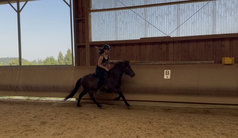 Apollo von Möllenbronn es un caballo de cuatro aires, muy amigable y simpático, de 5 años y un poco más pequeño. Actualmente está siendo montado, muestra mucha motivación y aprende rápido. Hasta ahora, siempre ha sido muy bien comportado durante el proceso de ser montado y ya conoce la silla, el freno, al jinete y actualmente se monta en los aires básicos en la pista cubierta y en el picadero. Tiene una gran variabilidad de tempo en el trote con movimientos amplios. Muestra tölting de vez en cuando durante la transición. Actualmente vive en un grupo mixto y es muy sencillo tanto en el manejo como en la interacción. Apollo está vacunado y desparacitado regularmente y goza de buena salud. Su padre es Glæsir von der Igelsburg (FIZO: 8,11) y su madre es una hija de Vidalin frá Hamraholi (FIZO: 8,4). Con más entrenamiento y experiencia, también podemos imaginar que será adecuado para niños o principiantes.
