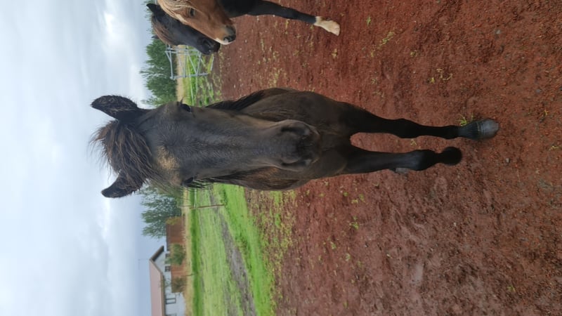 Dieses junge Hengstfohlen hat seine Zukunft glänzend. Er ist süß und kurios Karakter und sein Körper und Hals sind sehr gut gebaut. Er geht hauptsächlich auf t?lt, wenn er alleine rausläuft. die letzten beiden Bilder sind von seinem Vater und seiner Partitur.