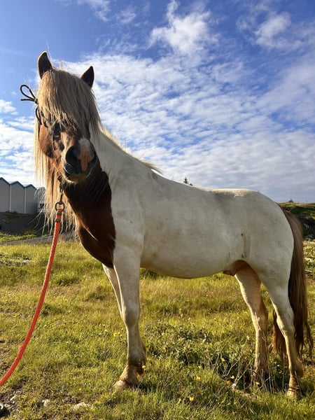 Joven potro semental hermoso con buen pedigrí de ambos padres. Padre compitió en Landsmót 2014 con una puntuación total de 8,25 La madre es de uno de los mejores sementales islandeses Sær frá Bakkakoti y él con una puntuación total de 8.62