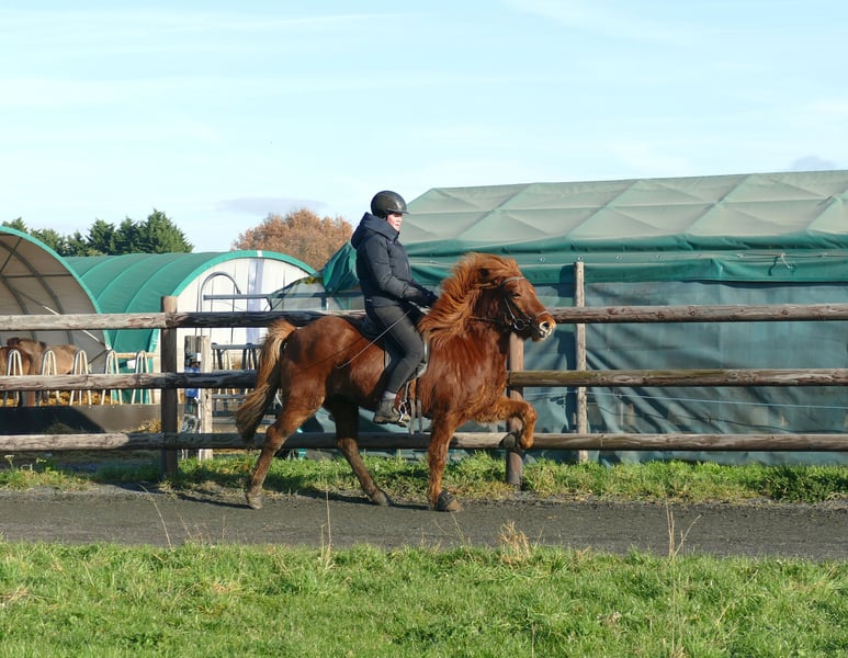 Roter Diamant Neisti ist ein vielversprechender junger Islandwallach, der durch seine altersgerechte, professionelle Ausbildung bereits jetzt eindrucksvoll zeigt, was in ihm steckt. Als eleganter Viergänger überzeugt er mit leichtfüßigen, taktklaren Bewegungen und einem besonders schön gesprungenen, ausbalancierten Galopp – selbst auf kleinen Kreisen sicher und mühelos abrufbar. Er kennt Bodenarbeit, Longieren sowie Reiten drinnen und draußen. Er kennt bereits eine Vielzahl an Situationen und arbeitet konzentriert sowie zuverlässig mit. Neisti ist sensibel an den Hilfen und bietet seinem Reiter dadurch ein feines, harmonisches Reitgefühl. Durch seine gute Rittigkeit und seine natürliche Leistungsbereitschaft eignet er sich sowohl als talentiertes Turnierpferd als auch als unkomplizierter, motivierter Partner für die Freizeit. Er ist brav im Umgang, gut sozialisiert in unserer Wallachherde und entspannt beim Schmied. Ein junger Wallach mit Zukunft – aufmerksam, elegant und bereit für neue Aufgaben. Neisti wartet auf einen Menschen, der sein Potenzial weiter fördern und mit ihm gemeinsam wachsen möchte. Aktuell ist er altersbedingt für einen sicheren, lockeren Jugendlichen oder ambitionierten Erwachsenen geeignet- kein absolutes Anfängerpferd, aber auch nicht besonders anspruchsvoll.