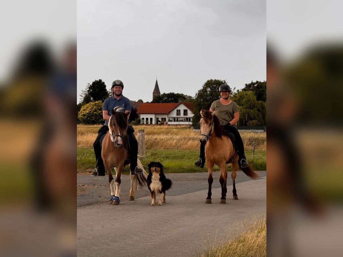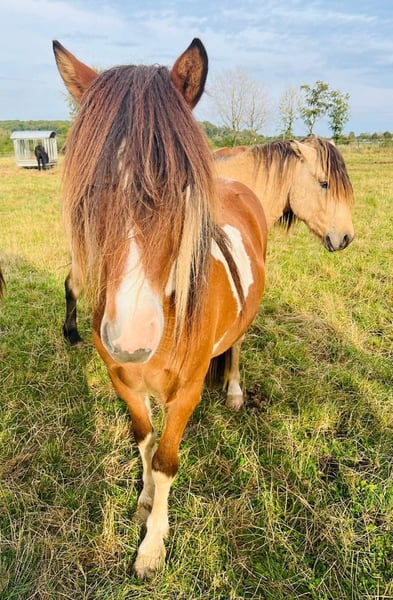 Angi von Blomatùn- seltene Gelegenheit & echtes Juwel. Angi hat das Wort "Verlasspferd" erfunden. Mit seinen 5 Jahren bringt ihn wirklich Nichts aus der Ruhe: Alleine ins Gelände mit 3 wild durcheinander laufenden Junghunden im Dunkeln- vorbei am Zug- kein Thema! In einer großen Gruppe über Stock und Stein, durch den Wald, vorbei am Schießstand und im Galopp mit einem halben Kilometer Abstand - für dieses Pferd ein Witz! Weihnachtskranz um den Hals, Turnübungen auf seinem Rücken- wo andere schon weg sind, steht Angi in erster Reihe und schmunzelt charmant. Neben seiner Nervenstärke ist er vom Gemüt auch Typ gemütlich- der Reiter kann definitiv mehr Treiben wie Bremsen, im Gelände läuft er angenehm aber immernoch eher langsam- ideales Kinder-Anfänger-Angstreiter-Pferd oder für Jeden, der ein nervenstarkes Pferd mit wenig Vorwärts toll findet! Angi läuft Schritt, Trab und Schaukelgalopp und zeigt auch (altersbedingt) erste Ansätze im Tölt- dieser muss weiter ausgebaut werden. Nach so einem Diamant werden wir so oft gefragt - also nicht zögern und vorbeikommen! Er wurde passend geimpft, Zähne sind gemacht und die Hufe sind ebenfalls regelmäßig gemacht: Checkheftgepflegt :)