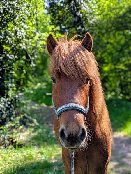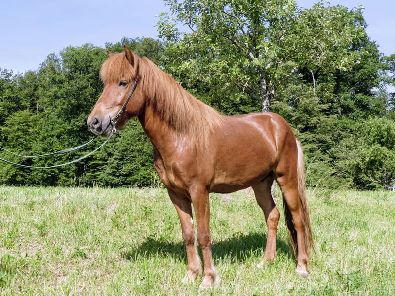 Blævar ist ein absolutes Traumpferd für jede/n Freizeitreiter/in! Er ist immer freundlich, kooperativ und unerschrocken und freut sich wenn man ihn rausholt. Er hat die Grundausbildung abgeschlossen und kennt freilaufen, longieren, Handpferdereiten, reiten in der Halle und im Gelände (alleine und zu zweit). Egal was man mit ihm macht, ist er einfach immer total unkompliziert. Er hat mittleres Temperament (nicht faul und nicht hektisch )und gut getrennte bequeme Gänge. Er ist fünfgängig und hat viel Tölt, wurde aber bisher dreigängig geritten. Er hat ein haromisches Gebäude und ist elegant gebaut mit stabilem Fundament. Er ist ekzemfrei, schmiede- und verladefromm. Blævar wurde als Fohlen bewertet mit 7,96 (Exterieur 8,20; Interieur 8,0; Gänge 7,8). Richterspruch: Fleißiges, aufmerksames Fünfgang Fohlen mit lockeren Gängen, gut mittleren Bewegungen, viel Tölt und sehr elegantem, gut bemuskeltem Gebäude. Als 4-jähriger hat er eine Gebäude-FIZO absolviert und hat für alle Merkmale 7,5 (Durchschitt) und 8,0 (gut) erhalten. Stark im Preis reduziert, da Blævar nach einer subklinischen Infektion leider eine geringgradige Herzinsuffizienz entwickelt hat. Er ist dadurch nicht beeinträchtigt, braucht keine Medikamente und ist voll leistungsfähg. Er kann jederzeit Probe geritten werden. Ich wünsche mir für Blævar einen Menschen, der ein Pferd mit dem allerbesten Charakter ebenso zu schätzen weiß wie eine schonende, pferdegerechte Ausbildung. Er hat ein Herz aus Gold. Nur in allerbeste Hände, Platz vor Preis.