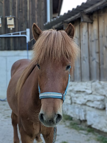 Blævar is an absolute dream horse for any leisure rider! He is always friendly, cooperative, and unflappable, and he enjoys being taken out. He has completed basic training and is familiar with free running, lunging, riding in-hand, riding in the arena, and trail riding (both alone and in pairs). No matter what you do with him, he is always completely uncomplicated. He has a medium temperament (not lazy and not hectic) and well-separated, comfortable gaits. He is a five-gaited horse and has been ridden in three gaits so far. We are now starting his tölt training. He has a harmonious build and is elegantly constructed with a stable foundation. He is free of eczema, and is good for the farrier and loading. Blævar was rated as a foal with 7.96 (Exterior 8.20; Interior 8.0; Gaits 7.8). Judge's statement: Diligent, attentive five-gaited foal with loose gaits, well-balanced movements, a lot of tölt, and a very elegant, well-muscled build. As a 4-year-old, he completed a conformation FIZO and received an average score of 7.5 and 8.0 (good) for all characteristics. Due to a minor flaw, the price has been significantly reduced. Blævar can be tried out at any time.