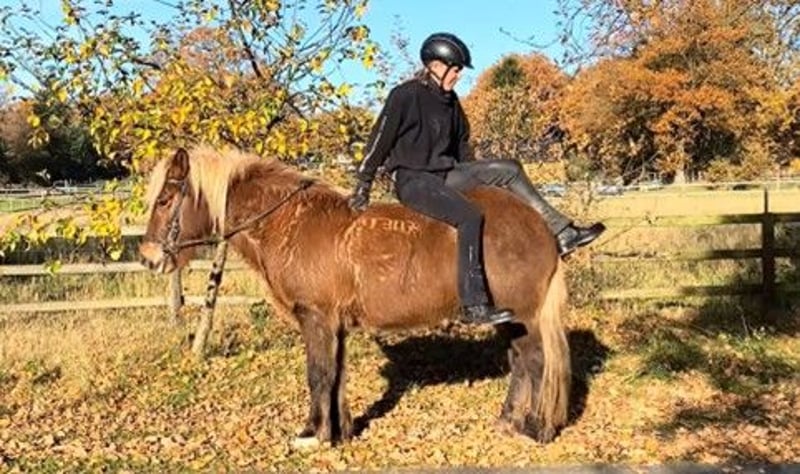 IS2018258184 Glóey frá Hólkoti - Stute - Brunwindfarben mit Stern & Schnippe - Fünfgänger - *2018 - Stm ca. 138cm Glóey – diese außergewöhnlich schöne, 2018 geborene braun-windfarbene Stute ist ein seltener Anblick. Mit ihrem großen Stern, den dunklen Beinen und dieser schimmernden Fellfarbe zieht sie jeden Blick auf sich – und wirkt dabei ruhig, klar und präsent. Sie ist fünfgängig veranlagt, mit einem wunderbar natürlichen, leicht zu reitenden Tölt, einem aktiven, energievollen Trab, gutem Schritt und einer harmonischen Galoppade. Ein Pferd mit Balance, Ausdruck und der seltenen Mischung aus Eleganz und Gelassenheit. Vom Temperament her liegt Glóey im angenehmen mittleren Bereich – sie reagiert fein auf ihren Reiter, lässt sich vorwärts treiben, bleibt dabei aber ruhig und aufmerksam. Ein Pferd, das zuhört – und immer in Verbindung mit seinem Menschen bleibt. ✨ Ideal geeignet für • Reiterinnen, die Harmonie und Sicherheit suchen • Wiedereinsteigerinnen oder Reiterinnen, die noch etwas unsicher sind • alle, die ein Pferd möchten, das sowohl Spaß als auch Vertrauen schenkt Glóey ist unerschrocken, freundlich und neugierig – Plane, Mülltonne, Fahrräder, hupende Autos oder der Kuhstall, nichts bringt sie aus der Ruhe. Sie geht mit und ohne Sattel, mit und ohne Zügel – immer zuverlässig, aufmerksam und gelassen. Im Gelände zeigt sie sich klar, sicher und mit weichem Bewegungsfluss – ein Reitgefühl voller Ruhe und Leichtigkeit. 💛 Eine junge Stute mit Ausdruck, Kraft und Charakter – elegant, fein und bereit, zu gefallen. Wenn dich Glóey genauso fasziniert wie uns, dann melde dich gern für ein persönliches Beratungsgespräch oder einen Proberitt.