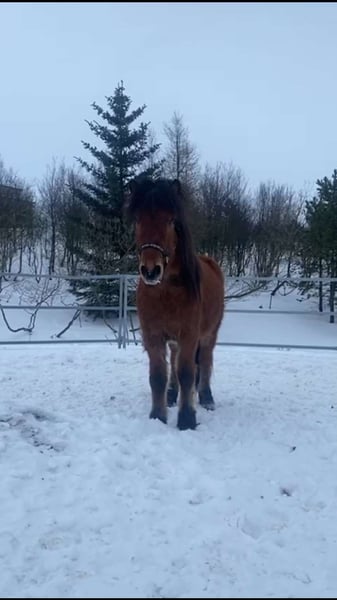 IS2018182794 Color Brown Gender Gelding Sire: Ómur frá Kvistum Dam: Kolfreya frá Holtsmúla 1 Dam's Sire: Orri frá Þúfu Location: Iceland Wonderful gelding with good lineage and DREAM character! I am selling my beautiful brown Ómur son with a heavy heart. He is out of a tested Orri daughter, who was rated 7.92. Kolfreya has already produced many very nice offspring. His father is Ómur frá Kvistum, the sire of many great breeding and sport horses. My gelding is extremely friendly and interested in people; he loves to be petted but is by no means pushy. He is about 1.40m tall. He shows an even trot and canter with beautiful movements. As a foal, he exhibited almost exclusively clear-timed tölt. Under the rider, he shows a lot of easy-to-ride tölt, and with more training, he will gain even more speed. Smaller competitions would certainly be possible with more training in the future, as he shows a good upward tendency in his body and also beautiful movements under the rider. He was in professional training for several months last year, where he demonstrated a very friendly, talented, and eager-to-learn attitude. At the moment, he is in the pasture but will be brought back into training soon. More photos and videos can be sent upon request!