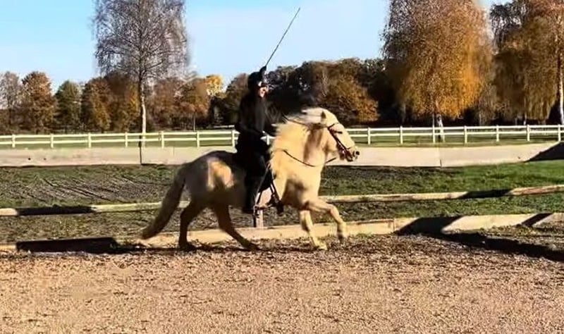 IS2018184861 Vopni Stormsson frá Efra-Hvoli – Castrone – Isabelle – *2018 – Altezza circa 142 cm Vopni Stormson, questo castrone nato nel 2018, dal mantello dorato chiaro, è un vero apri-cuore. Con un’altezza di circa 1,42 m, carattere tranquillo e quattro andature ben distinte, è un cavallo che suscita immediatamente gioia. Vopni è un cavallo amichevole, semplice da gestire, con una bella forma, seduta morbida, trotto piacevole e galoppo rotondo. Nel passo tölt è ancora in fase di sviluppo, ma già riesce a mantenere un ritmo lento con grande facilità e ogni giorno si evolve ulteriormente. Dal punto di vista del temperamento, Vopni è obbediente, affettuoso, mansueto e piacevolmente avanti, senza mai diventare nervoso. Proprio per questo è ideale per cavalieri alle prime armi, re-starter, bambini, giovani o adulti che desiderano un cavallo sicuro e amichevole. È incredibilmente coraggioso: traffico stradale, clacson, bidoni della spazzatura, teli, ciclisti, macchinari, tagliaerba, tombini – Vopni ha affrontato tutto con una calma impressionante. In campagna è un sogno: morbido, affidabile, concentrato e stabile. A livello di dressage, è già molto ben addestrato: lavoro con le barriere, salto, esercizi di scioltezza, prime lezioni di raccolta, longering – può fare tantissimo ed è molto desideroso di imparare. Un cavallo che permette di fare splendidi esercizi di dressage e che si muove con tranquillità anche in passeggiata in natura. Per esami, corsi o tempo libero – un vero talento polivalente con cuore. 💛 Vopni è il cavallo ideale per chi cerca sicurezza, leggerezza e cordialità. Se ti entusiasma tanto quanto noi, non esitare a contattarci per una consulenza o una prova su campo.