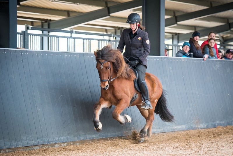Beschrijving: Baugur is een grote, imposante, prachtige 4-gang ruin met een evenwichtig en eerder rustig temperament. Exterieur: Baugur is over het algemeen een slank type - groot, elegant en langbenig - met een goed fundament. Hij heeft een zeer goede halsing. Vooral opvallend is zijn mooie, weelderige manen. Karakter: De mooie bruine is vriendelijk, evenwichtig en ontspannen. Hij kan goed stil staan. Baugur heeft een gemiddeld temperament en is zeer sociaal in de kudde. Gangen: Lichtvoetige ruin met veel natuurlijke tölt. Hij is momenteel opgeleid tot het gemiddelde tempo en loopt taktzuiver en elastisch. Hij heeft goed ontwikkelde middellange bewegingen en soepele basisgangen. Opleidingsniveau: Baugurs basisopleiding is afgerond, hij kan in alle gangen aan de teugel gaan en nageven. Hij begrijpt de samenwerking van de hulpen en kent schouderbinnenwaarts en achterwaarts. Baugur kan op alle terreinen en in het veld zowel alleen als in een groep gereden worden. Wie past bij mij: Baugur kunnen we ons, gezien zijn grootte en fundament, ook goed voorstellen als toekomstige gewichtdrager en allrounder. Vader: Zijn vader Hamar is een Laxness-zoon zoals het hoort: groot, elegant, met veel natuurlijke tölt en hoge, ruime bewegingen, evenals een vriendelijk, ontspannen karakter en een prachtige manen en staart (9.5 in de FIZO). In de materiaalbeoordeling werden ook de zeer goede takt in de tölt met hoge voorhandactie (8.5), de zeer veilige draf met goede sprongfase (8.5), de snelle galop met goede strekking (8.5) en zijn goede vorm onder de ruiter met een zacht, beweeglijk nek (8.5) en zijn enthousiaste karakter (8.5) benadrukt. Moeder: Baugurs moeder Brún is een zeer kindvriendelijke merrie, wiens tölt altijd taktzuiver en zeer gemakkelijk te rijden is. Ze is een rustig paard dat altijd vriendelijk in de omgang is. Brún is een populair tölt-leerpaard dat zijn talent al op vele API-cursussen heeft bewezen. Bijzonder te benadrukken is Brúns goede afstamming. Ze stamt af van Stjarni frá Dalsmynni, die een zoon is van de Landsmot-winnaar Orri frá Pufu. Broers en zussen: Baugur is een halfbroer van Bleikja, Bogi en Bylgia. Zijn volle zus Bleikja staat in Oostenrijk en is daar succesvol FEIF gepresenteerd. Ze ontving 8,5 voor galop, karakter en loopbereidheid. Verzorgingsstaat: De verzorging en voederstaat van Baugur is uitstekend, bovendien is hij eczeemvrij en komt uit eczeemvrije ouderlijnen. Overige: Baugur is, net als al onze paarden, geregistreerd in de wereldwijde IJslandse paarden database Worldfengur, te herkennen aan het FEIF-ID-nummer. In de Worldfengur zijn alle fokwaarde schattingen (Internationaal BLUP) halfjaarlijks bijgewerkt. Voor inzage in de fokgegevens verzoeken wij u om contact met ons op te nemen. Prijs categorie: D - boven de 35.000€