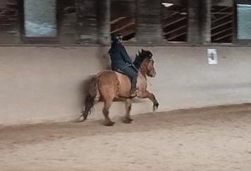 Tengill wurde 5/2018 in Österreich geboren und kam zu Beginn des Jahres 2025 direkt vom Züchter (Stefanihof) zu uns. Sein sanftes Wesen hat uns dabei sofort angesprochen - ein wahrer Gentleman. Dabei ist er dennoch sehr neugierig, manchmal mangels Erfahrung noch etwas unsicher, aber nicht schreckhaft oder gar unbeherrscht. Er hat bisher noch keine schlechten Erfahrungen mit Menschen gemacht und kennt von unserer Seite auch weder Druck noch Bestrafung. Das soll auch nach dem Besitzwechsel so bleiben! In den Hänger aus- und einsteigen ist für ihn kein Problem, den Hufschmied und Tierarzt kennt er ebenso. In den Sommermonaten steht er rund um die Uhr auf den hauseigenen Weiden und zeigt sich in der Wallachherde eher im oberen Rangbereich ohne überdurchschnittliches Dominanzverhalten. Seine einzigartige Farbgebung (Braunfalbe mit Aalstrich) und sein großrahmiges Gebäude fallen durchaus auf und machen ihn schon zu etwas Besonderem. Unter dem Sattel zeigt er viel Aktion mit viel hoch/weit und will einfach gefallen. Seine Größe ermöglicht einen soliden Sitz, bietet dem Reiter viel Sicherheit und macht einfach Spaß. Wir sehen in ihm einen verlässlichen Partner sowohl als luxuriöses Freizeitpferd als auch im 5-Gang-Sport. Sein kräftiges Gebäude und seine Größe machen ihn auch zu einem idealen Pferd für Erwachsene. Tengill wird bei uns derzeit regelmäßig geimpft, entwurmt und beschlagen, zeigt keinerlei Anzeichen von Ekzem oder anderen Krankheiten. Aufgrund des derzeitigen Ausbildungsstandes ist er im Moment noch preiswert abzugeben, allerdings steigt der Preis mit fortschreitender Ausbildung, mit welche wir ab 3/2026 beginnen werden. Wir vergeben Tengill in keinen Schulbetrieb (!!!) und verkaufen ihn nicht um jeden Preis. Engagierte Reiter:innen mit ausreichender Reiterfahrung wären für ihn der/die perfekte Partner:in!