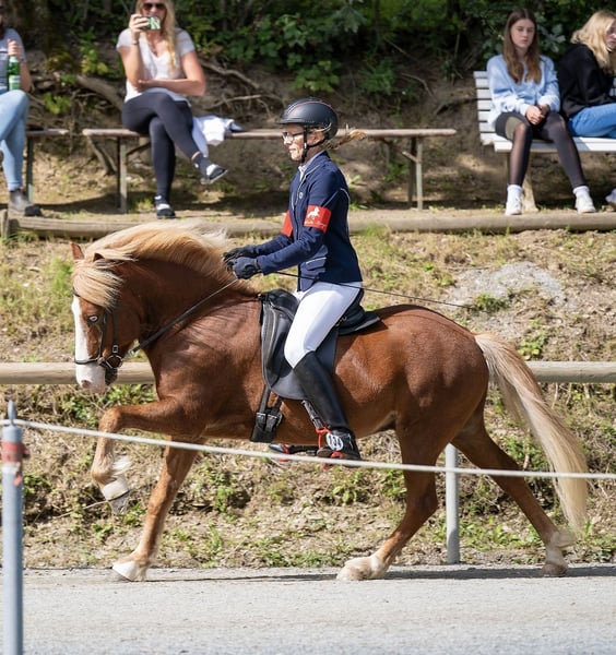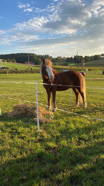 Der 9-jährige Islandwallach Vaskur vom Sonnenhof ( V: Djáknar fra Hvammi) überzeugt mit seiner freundlichen Art und seiner vielseitigen Veranlagung. Er ist viergängig veranlagt und punktet mit tollen Grundgangarten – mit bereits gezeigten Noten bis 7,0 im Galopp und 6,5 im Trab. In der D5 war er bereits siegreich mit einer Note von 6,79 und ist allgemein sehr gut in der Dressur ausgebildet. Vaskur ist ein absoluter Schatz im Umgang: • brav im Gelände, ob alleine oder in der Gruppe • verlade- und schmiedefromm • unkompliziert im täglichen Handling •. Auch für Kinder und ängstliche Reiter geeignet. Unter dem Sattel zeigt er sich motiviert und vielseitig: Er arbeitet gerne mit in der regelmäßigen Dressurarbeit, hat Freude am Springen und ist stets zuverlässig und angenehm zu reiten. Er ist regelmäßig entwurmt und geimpft. Er ist absolut Herden verträglich, kein Ekzem und gesund. Vaskur vom Sonnenhof ist ein liebenswerter Partner für Freizeit, Sport, Bodenarbeit und Gelände – ein toller Allrounder, der seinem Reiter viel Freude bereiten wird.