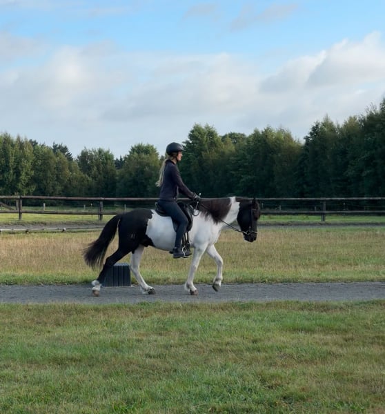 Wunderschöner Islandpferd-Wallach zu verkaufen Wir bieten einen charmanten Islandpferd-Wallach zum Verkauf an, geb. 2016, Rappschecke, Viergänger, Stockmaß ca. 145cm Dieser liebevolle und gut gerittene Wallach überzeugt durch seine auffällige Scheckung und sein freundliches Wesen. Sein Schritt ist schreitend, sein Trab schwungvoll und sein Galopp schön gesprungen. Für den Tölt braucht es aktuell noch etwas reiterliches Geschick. Er geht in der Gruppe und alleine ins Gelände, auch Dressurarbeit in der Halle kennt er. Durch seinen Körperbau wirkt er eher größer als seine ca. 145cm Stm. und deckt dadurch auch größere Reiter gut ab. Er steht aktuell in einer großen Wallachherde und ist eher rangniedrig. Er ist seit zwei Jahren in Deutschland, hat bisher keine Anzeichen von Ekzem gezeigt. Er wird aber vorsorglich im Sommer bei uns eingedeckt. Bei Interesse oder weiteren Fragen freuen wir uns über Nachricht! Standort: Schwanewede