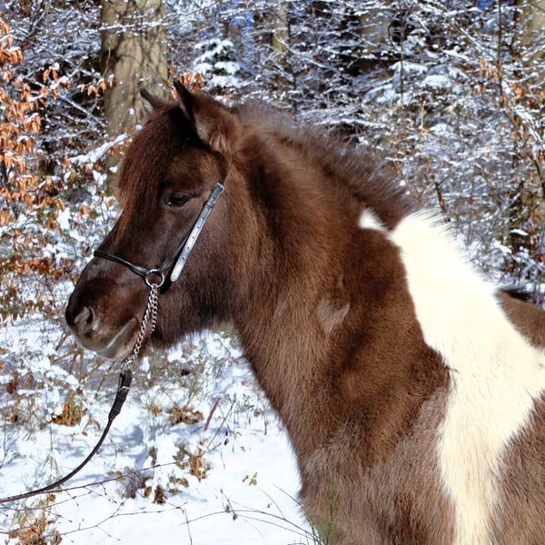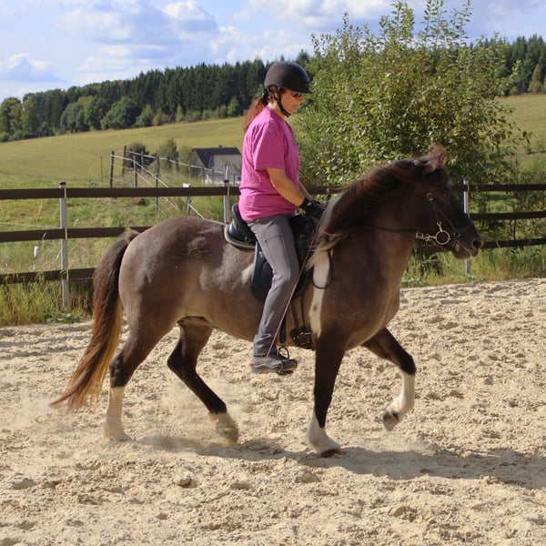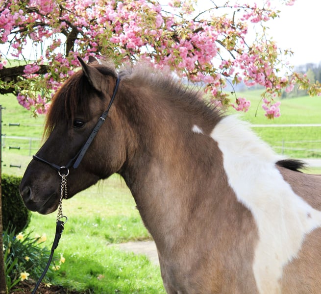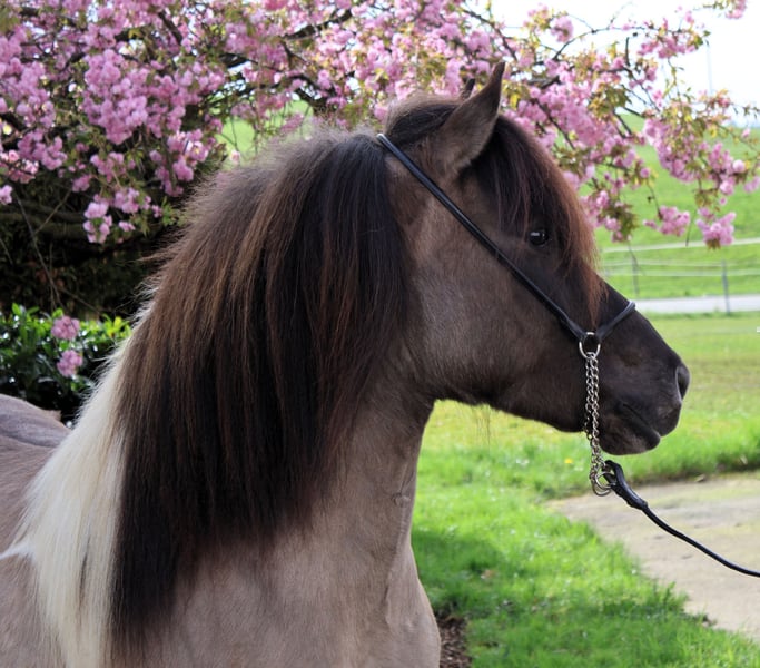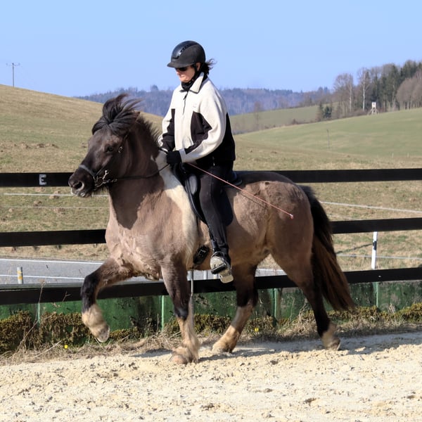 Hnísa ist eine große, hübsche Mausfalb-Scheckstute mit tollem Charakter und guten Gängen, dem Menschen immer freundlich zugewandt. Hnísa hat uns von Beginn an gut gefallen, so dass wir zwei Fohlen mit ihr gezogen haben, die beide wunderbar geworden sind. Nach dem Absetzten des letzten Fohlens haben wir im Frühjahr ´24 mit der Ausbildung begonnen. Hnísa kennt Bodenarbeit, Longe, Doppellonge, im Gelände ist sie immer fleißig unterwegs und dabei super brav. Auf dem Reitplatz ist sie unkomliziert und immer bemüht, dem Reiter zu gefallen. Alles in allem ein echtes Spaßpferd, was wir im Moment im gehobenen Freizeitbereich sehen. Mit weiterem Training wird sie auch im Sport einen guten Eindruck hinterlassen. Weitere Informationen und viele Bilder vom ersten Lebenstag an sind auf unserer Homepage unter www.islandpferdehof-obersolbach.de/fotogalerie/hnísa zu finden. Bei Interesse freuen wir uns über einen Anruf.