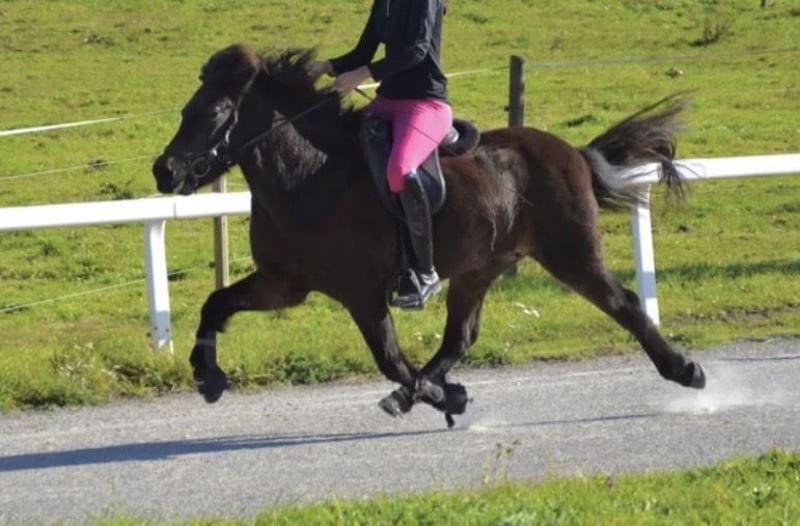 Sol von Möllenbronn ist eine fünfgängig veranlagte Stute mit viel Rennpass. Sie hatte bei uns einige sehr schöne Fohlen, wovon bereits 2 in diesem Jahr erfolgreich gekört wurden. Nach ihrem letzten Fohlen wurde sie wieder schonend antrainiert und wird seitdem geritten. Sols Vater ist der bekannte Stáli frá Kjarri, ihre Mutter ist eine Vidalin frá Hamraholi Tochter. Sie hat sehr viel sehr guten Rennpass und konnte dies auch schon im Reitabzeichen 3 unter Beweis stellen (Note 1,5). Auch im Umgang ist sie sehr brav und motiviert. Neben den Rennpass hat sie viel Tölt. Der Trab und Galopp benötigen noch etwas mehr Routine und Balance. Neben dem Reiten (im Gelände, auf der Ovalbahn oder auch auf dem Reitplatz), ist Sol für jeden Spaß zu haben und macht auch gerne Bodenarbeit etc. Auch Kinder sind sie bereits geritten. Sie steht in einer gemischten Herde und ist Ekzemfrei. Außer einem ausgeheilten Griffelbeinbruch vor vielen Jahren, der sie nicht weiter einschränkt, ist sie vollkommen gesund. Wir können uns Sol sehr gut als perfekten Freizeitpartner, Familienpferd oder auch als Turnierpferd für die Passdisziplinen vorstellen.