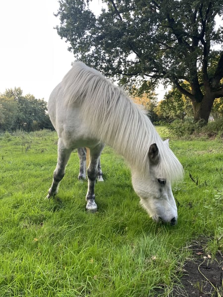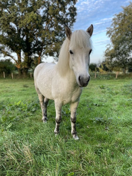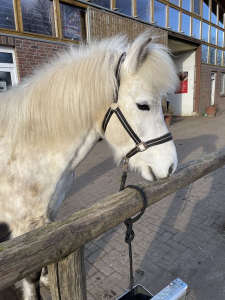 Ich verkaufe meine 2014 geborene Schimmelstute Von frá Gauksmyri als Zuchtstute oder Beisteller/Bodenarbeitspferd. Nach einer austherapierten Trittverletzung vor drei Jahren wurde sie nicht mehr geritten und hat im Sommer ein gesundes Stutfohlen zur Welt gebracht. Sie macht ihre Sache als Mama sehr gut. Das Fohlen steht nicht zum Verkauf und Von ist nicht tragend für 2026. Auf der Weide ist sie in allen Gängen lahmfrei. Genaueres zur Verletzung gerne im privaten Gespräch. Von wurde vorher normal geritten und war ein gehobenes Freizeitpferd mit vier klar getrennten, taktklaren Gängen, komplett schreckfrei und brav, allerdings mit starkem Charakter. Ich wünsche mir für Von einen Platz als Zuchtstute oder Beisteller in einem Offenstall. Ich kann mir vorstellen, dass sie nach schonendem Antrainieren auch wieder Kinder tragen kann. Auch als Therapiepferd ist sie gut geeignet. Sie hat in meinem Besitz immer Heulage bekommen und nie gehustet, die Vorbesitzerin hat auf eine Heustauballergie hingewiesen. Aktuell steht sie in Blåvand, Dänemark und kann dort nachdem das Fohlen abgesetzt ist ausziehen (spätestens Ende März). Vater: Gandalfur frá Selfossi Mutter: Valkyrja frá Gauksmyri