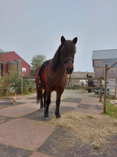 Omdat ik graag snel een pony voor jongere kinderen wil, bied ik voor snelle beslissers een aantrekkelijke prijs aan ;) Een goed bereden, brave en betrouwbare viergangmerrie met veel rijplezier. Ze is geboren in 2013, ongeveer 1,40 m groot en heeft een stevig fundament. Ze beschikt over een zeer goede afstamming, waardoor ze zowel voor de fokkerij als voor wedstrijden interessant is. Ook in de recreatie biedt ze veel plezier, omdat ze ondanks haar viergangveranlag eenvoudig te rijden is met een prettige tölt. Ik heb met haar op verschillende maneges cursussen gevolgd; ze is gewend aan reizen en het maakt haar niets uit. Ze is bekend met rijden in de piste, hal, buiten en op het terrein. Ze is geschikt voor zowel volwassenen als jongeren, en kan ook grotere, goed rijdende kinderen rustig dragen. Ze kent het leiden met kleine kinderen op de rug. Ze is regelmatig gevaccineerd, ontwormd en krijgt mineralenvoer. Ze is gewend om beslagen en onbeslagen te worden en heeft een goede hoefkwaliteit. Ze is schoor en laadbaar, en vertrouwd met de hoefsmid. Als importpony draagt ze in de zomer preventief een deken, deze is bij de prijs inbegrepen. Ze is herdengemakkelijk, gewend aan een open stal, maar ook aan boxen en kan goed tegen normaal hooi. Diverse rijvideo’s zijn beschikbaar en ze kan op elk moment worden leren kennen en proefgereden. Locatie: 2,5 uur van Keulen.