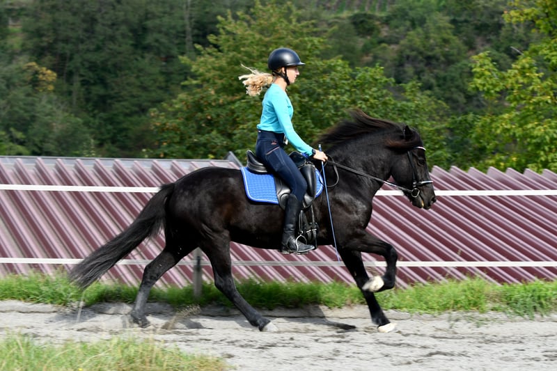 Verkaufe meine Isländer Stute Fjalladis von Roderath geb. 19.06.2013 Stute, Rappe, 1,40m (Vater: Farsaell von der Elschenau) Fjalladis ist meine Prinzessin, die mit einem durchs Feuer geht! Noch mehr Eindrücke findet ihr auf Instagram unter: Die_ponys_vom_Erdbeerfeld Zu schön um wahr zu sein! Sie besitzt eine komplette Ausstattung. Regendecke von Sportsfreund, Abschwitzdecke von Sportsfreund, Schabracken, 2 Trensen, Halfter, Knotenhalfter, Noturns, Gamaschen alles mit abzugeben. Das ganze Zubehör ist in top Zustand, sie hat einen Sattel von Champion Rider Modell Evolution erst kürzlich frisch angepasst. Nur wegen Umstieg auf den Dressursport. Sie ist ein absolutes Verlasspferd, eine echte Allrounderin, top Ausgebildet und in top Kondition und dazu auch noch bildhübsch mit Mega Behang! Sie macht einfach alles mit und vertraut zu 100% KEIN Ekzem oder sonstige Krankheiten! Lebt im Offenstall mit 24/7 Heulage Sommer immer Tag und Nacht Weide Meine Töchter damals 8 und 10 Jahre alt haben auf ihr reiten gelernt. Sie war über 5 Jahre regelmäßig bei Lukas Hiesinger (Gestüt Hemsberg) in Beritt Sie hat unter mir und meiner Tochter an zahlreichen Lehrgängen bei Lukas Hiesinger, Laura Grimm und Stefan Hackauf (Turnierrichter) teilgenommen. Aktuell seit 1 Jahr, 2x wöchentlich Dressurberitt bei Miriam Weiß (selbst erfolgreich in Dressur bis Klasse M und Springen bis Klasse S) Sie ist aktuell in der Dressur bis Klasse L ausgebildet! Sie geht ins Wasser Kinder können auf dem Rücken turnen Fährt Anhänger wie ein Profi Freispringen liebt sie Im Gelände immer verlässlich egal ob gemütlich im Schritt oder ein Wettrennen mit Spaß vollgas! Halsring reiten, Extremtrail, Reithalle, auswärtiges Training, Ovalbahn, Führmaschine, Laufband, Stopp im Biergarten, all das beherrscht sie im Schlaf!! Geht auch ohne Probleme alleine überall hin. Keine Angst vor Radfahrern, Traktoren, Straßenverkehr oder sonstigem. Warum verkauft man sowas!? Meine Tochter hat sich einfach in eine andere Richtung entwickelt und nie richtig Spaß an den Isländern gefunden. Da wir unser Hobby gemeinsam fortführen möchten, habe ich mich entschieden auch wieder umzusteigen zur klassischen Reitweise ohne 4. und 5. Gang. Es fällt mir wirklich schwer, mich von ihr zu trennen, aber der Fokus liegt jetzt auf einer anderen Reitrichtung. Sie verdient einen Reiter, der ihre Vielseitigkeit und ihre gute Ausbildung zu schätzen weiß. Wer schonmal ein Pferd in Beritt hatte, weiß was gute Ausbildung kostet! Mir war gute Ausbildung und guter Beritt für die Gesunderhaltung immer wichtig. 3x jährlich entwurmt Zahnarzt war am 27.1.26 Tetanus, Influenza und Herpes komplett durchgeimpft! Sofort für Turnier einsatzfähig. Bei ernsthaftem Interesse bitte anrufen. Probereiten jederzeit möglich!