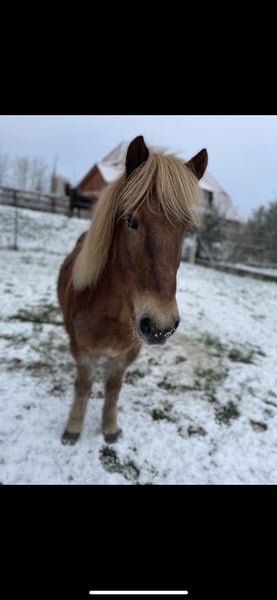 I am offering my beautiful mare Soka for sale. She is a very sweet and attractive chestnut mare with a light mane. Soka is 13 years old and has been ridden solely for leisure purposes by me, mostly in the field. She arrived from Iceland in autumn 2020 and has been with me ever since. Soka has all five gaits. Her favorite gait is the tölt. She is very comfortable to ride and makes riding a lot of fun. She is not suitable for beginners, as she is a very motivated and energetic horse with a moderate temperament. She is always easy to control. She has no fear of trekkers or similar, but she sometimes finds stones a bit spooky. She is being offered only due to my pregnancy, so I prioritize a good home over price. Unfortunately, Soka has developed sweet itch in recent years, which is well managed with a fly sheet.