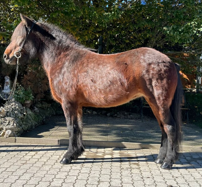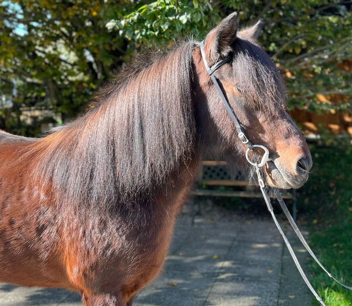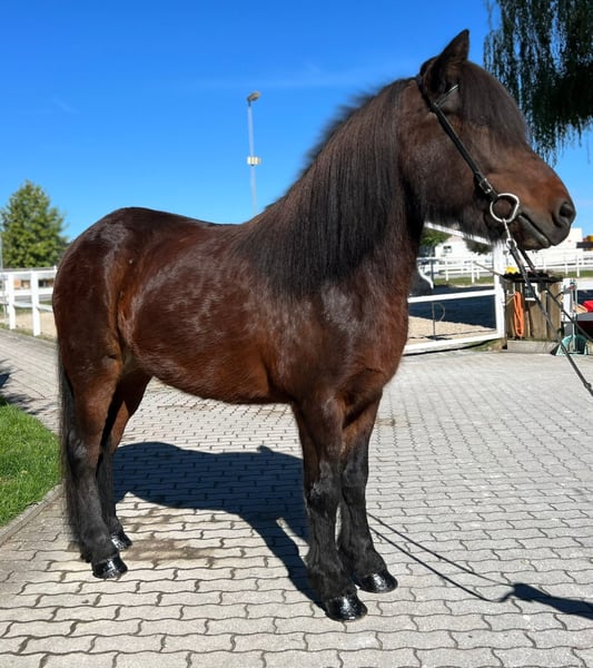 Náttrun frá Tuen Stute, 142cm groß *2013 in Dänemark Viergängig ekzemfrei und völlig gesund beschlagen, entwurmt Zähne frisch gemacht✅ V: Kramsi frá Blesastöðum 1A 8,31 (Ext 8,15 Re 8,42)‼️ VV: Töfri frá Kjartansstöðum 8,45 (Ext 8,29 Re 8,55)‼️ M: Mura frá Heiði 7,72 (Ext 8,04 Re 7,41) MV: Angi frá Laugarvatni 8,26 (Ext 8,26 Re 8,26)‼️ Náttrun ist ein wahr gewordener Traum in glänzendem kastanienbraun mit viel Mähne. Sie hat vier klar getrennte Gänge, die ganz einfach zu reiten und super bequem zu sitzen sind. Ihre Gänge sind so ansprechend, dass sie auch im Sport eine gute Figur machen würde und bestimmt das ein oder andere Schleifchen sammeln könnte. Ihre durchgehend geprüfte Abstammung zeigt auch deutlich auf Papier was da in ihr steckt. Die hohen Reiteigenschaftsnoten in ihrer Blutlinie spiegeln sich in ihrem Charakter und in der Art wie sie sich reiten lässt wieder. Vielleicht mal ein eigenes Fohlen ziehen? Hast du geplant dich weiterzubilden? Mit Náttrun kannst du Kurse besuchen oder auch Reitabzeichen absolvieren. Beim Reiten in der Halle/Bahn, longieren oder Ausreiten ist die schöne Stute immer verlässlich und mit Freude dabei. Sie zeigt sich völlig unerschrocken in neuen Umgebungen und trägt ihren Reiter alleine sowie auch in der Gruppe sicher durchs Gelände. Aufgrund ihrer guten Ausbildung, Ihrer Zuverlässigkeit und ihres lieben Charakters ist die braune Stute ein tolles Pferd auch für Kinder- und Jugendliche. Wer die tolle Náttrun kennenlernen und probieren möchte, kann dies gerne nach Absprache bei uns in A-5221 Lochen am See tun.