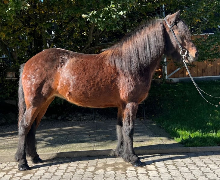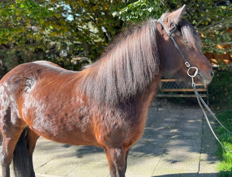 Náttrun frá Tuen mare, 142cm tall *2013 in Denmark Four gaited eczema-free and completely healthy shod, dewormed Teeth freshly made✅ Sire: Kramsi frá Blesastöðum 1A 8,31 (Ext 8,15 Re 8,42)‼️ VV: Töfri frá Kjartansstöðum 8,45 (Ext 8,29 Re 8,55)‼️ M: Mura frá Heiði 7,72 (Ext 8,04 Re 7,41) MV: Angi frá Laugarvatni 8,26 (Ext 8,26 Re 8,26)‼️ Náttrun is a dream come true in shiny chestnut with lots of mane. She has four clearly separated gaits that are very easy to ride and super comfortable to sit on. Her gaits are so appealing that she would also cut a fine figure in sport and could certainly collect a ribbon or two. Her thoroughly tested pedigree also clearly shows on paper what she is made of. The high riding qualities in her bloodline are reflected in her character and the way she can be ridden. Perhaps you would like to breed your own foal? Are you planning further training? With Náttrun you can attend courses or take riding badges. When riding in the arena/track, lunging or riding out, this beautiful mare is always reliable and a joy to ride. She is completely fearless in new surroundings and carries her rider safely through the terrain both alone and in a group. Due to her good training, her reliability and her lovely character, this bay mare is also a great horse for children and young people. If you would like to get to know and try out the great Náttrun, you are welcome to do so by appointment with us in A-5221 Lochen am See.