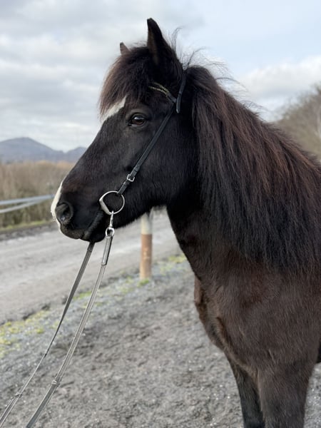 Rovinja is a 13-year-old, elegant and tall five-gaited mare that immediately captures attention with her appearance. Leggy, expressive, and blessed with the distinctive Splash gene, she draws all eyes to her. Whether on the dressage arena or out in the terrain, her size, mechanics, and presence give her a commanding aura that cannot be overlooked. As a typical five-gaited horse, her greatest strength clearly lies in her Tölt. From a calm walk to a good medium tempo, she demonstrates excellent quality, rhythm, and expression. Truly a pleasure for the rider. Her basic gaits are always accessible, though they require calmness and patience to bring out her best. With lighter boots, Rovinja finds her balance particularly well and then presents trot and canter with appealing quality. She offers a wonderful riding experience and aims to please her rider. The tölt gait is present but has never been specifically trained or developed; however, she naturally offers it to the rider. She has great potential for those willing to continue her training. Rovinja is well-trained, sensitive to aids, and pleasant to ride with a forward-thinking attitude. She is easy to regulate and makes tölt riding a true joy. At the same time, she needs an experienced rider who can provide her with confidence and clarity, as she can sometimes become a bit excitable. She tends to be the type of horse that enjoys being worked with. Whether as a stylish leisure horse, a reliable partner for trail rides and excursions, or for smaller competitions, Rovinja leaves hardly any wishes unfulfilled. Since arriving in Aegidienberg in 2025, she has been part of our large mare herd and has proven to be a friendly, unobtrusive mare in her handling. She was born in Austria. Notably, her grandsire, Glampi frá Vatnsleysu, was renowned for his exceptional gait quality and distinctive appearance in his time—qualities that Rovinja also undoubtedly possesses. Rovinja is a mare suited for riders with sensitivity and experience who appreciate quality, presence, and refined communication. If you are looking for an elegant five-gaited mare with a special look and abundant tölt, Rovinja could be the perfect match for you.