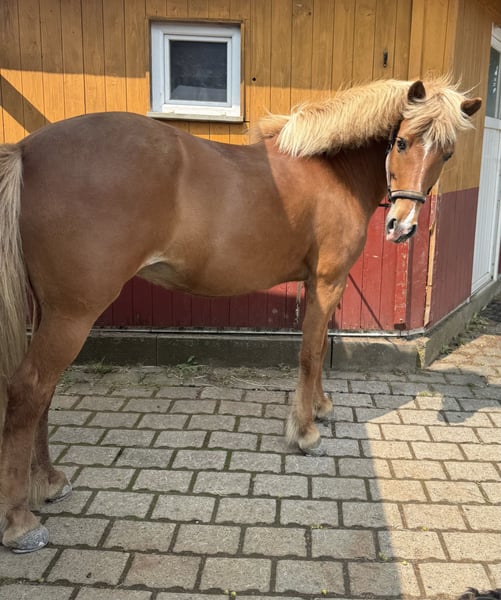 Leysing impresses with her fearless nature, her playful spirit, and her desire to please. She is perfect for anyone seeking a loyal partner for leisure riding and adventures! Leysing is equally confident in the terrain both during the day and at night, riding alone or in a group. She is absolutely unshakable and very sure-footed. She enjoys working in the indoor arena or on the riding track, knows basic dressage figures, and excels in lateral movements. She loves circus tricks (with or without a dog), loads onto the trailer easily, and is uncomplicated with the farrier and veterinarian. I have kept her solely as a leisure horse. However, several trainers have confirmed during lessons that she could certainly compete in shows. Since I have not been interested in competing, she has not had that experience so far. I can imagine Leysing as both a family horse and a suitable mount for younger children, or, with proper training, for ambitious riders. I had the pleasure of getting to know her father—an absolute treasure. He competed successfully in youth squads and at various competitions. In her youth, Leysing suffered from a periodic eye inflammation; both eyes were operated on, during which the affected fluid was replaced. Since then, she has full vision in her left eye, while she perceives shadows with her right. However, this is not noticeable to anyone, and many are surprised when I mention it. She has always been kept in small herds in an open stable and on summer pastures. She is familiar with mixed and mare-only herds, and after a normal acclimatization period, she shows herself to be compatible and uncomplicated in these groups. She can be fed hay in portions or with 24-hour access. I have regularly dewormed and vaccinated her, and her teeth have been checked regularly with everything being normal. An osteopath and chiropractor have also examined her periodically. Furthermore, she is eczema-free. Due to the need to give up horsekeeping entirely, Leysing is available with all accessories. I am happy to include her rugs, grooming supplies, saddle (Summer Opus), bridle, riding pad, lunging girth, lunge line, and more. I wish Leysing the best possible home with a suitable person. This is not a distressed sale.