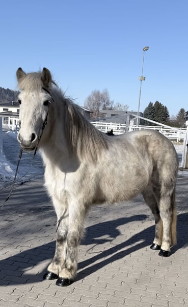 Hekla fra Langtved Stute, 1,43m groß Schimmel, *2012 in Dänemark Fünfgängerin, viergängig geritten ist im Sport bereits Fünfgang gelaufen ekzemfrei, entwurmt, beschlagen, geimpft✅ AKU vorhanden✅ V: Erfingi frá Grafarkoti 8,13 (Ext 8,0 Re 8,22)‼️ VV: Klettur frá Hvammi 8,49 (Ext 8,43 Re 8,54)‼️ M: Fluga fra Gl. Essendrup 7,58 (Ext 7,80 Re 7,43) MV: Þjálfi frá Keldudal 7,93 (Ext 7,83 Re 8,03) Hekla ist eine richtig hübsche Schimmel Stute mit einem Charakter aus Gold. Sie ist ein absolutes Verlasspferd, egal wo man sie reitet. Mit ihren 14 Jahren bringt sie Erfahrung und Ausbildung mit, welche sie zum perfekten Lehrpferd machen. Auch Kinder trägt sie ganz selbstverständlich auf sich rum. Wer ein Pferd für die ganze Familie sucht wird hier fündig. Ihre Gänge sind klar getrennt und ganz einfach zu reiten. Ihr Tölt ist auch von weniger geübten Reitern ganz mühelos abzurufen. Ihr Galopp ist gut gesprungen und ganz weich zu sitzen. Sie zeigt sich in neuen Umgebungen oder Situationen völlig unbeeindruckt und bleibt selbstsicher bei ihrer Sache. Hekla kann sogar Turniererfahrung vorweisen und ist dort im Viergang, im Fünfgang und im Tölt vorgestellt worden. 2025 durfte sie ein Fohlen bekommen und war auch hier vorbildlich und eine absolute „Vorzeigemama“ 😍. Ihre durchgehend geprüfte und wirklich interessante Abstammung machen Sie definitiv auch für die weitere Zucht interessant. Freizeit, Zucht, Sport, Einstieg, Kurse und sogar Trainerscheine können mit ihr zusammen gemeistert werden. Einfach eine absolute Allrounderin. Aufsitzen, wohlfühlen und einfach nur genießen ist bei dieser Stute das Motto.♥️ Wer die schöne Hekla kennenlernen und probieren möchte, kann dies gerne nach Absprache bei uns in A-5221 Lochen am See tun.