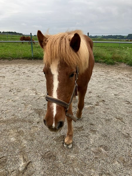 Da ich meiner Stute aus zeitlichen Gründen leider nicht mehr gerecht werden kann, suche ich für sie einen neuen Besitzer, bei dem das Wohl des Pferdes an oberster Stelle steht. Sie ist eine sehr liebevolle Stute, die immer ihr Bestes gibt und große Freude an der gemeinsamen Arbeit mit ihrem Menschen hat. Im Umgang ist sie brav, aufmerksam und menschenbezogen. Beim Reiten zeigt sie sich zuverlässig und ehrlich. In Gesellschaft mit anderen Pferden hat sie manchmal etwas mehr Energie, alleine ist sie hingegen tiefenentspannt und angenehm zu reiten. Auch wenn sie gerne vorwärts geht, ist sie jederzeit gut regulierbar und zuverlässig zu bremsen – ein absolutes Verlasspferd. Sie ist geländesicher; Traktoren, LKWs und sonstiger Verkehr stellen für sie kein Problem dar. Ihre Gänge sind insgesamt sehr bequem, weshalb auch das Reiten ohne Sattel problemlos möglich ist. Besonders hervorzuheben ist ihr wunderschöner Galopp, in den sich nahezu jeder Reiter sofort verliebt. Sie verfügt auch über einen starken Trab, Schritt und Tölt zeigen sich zeitweise leicht passig. Sie ist Fünfgängerin mit einem stark veranlagten Pass, der bisher jedoch nur selten geritten wurde. Ich wünsche mir für sie einen liebevollen Menschen, der Freude an einem motivierten, ehrlichen Pferd hat und sie weiter fördert.