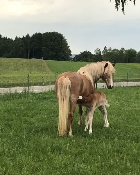 Nach langer Überlegung habe ich mich dazu entschlossen meine Islandstute zu verkaufen. Mánadis vom Panoramablick, Geb.: 2009 Sie ist immer eine verlässliche Partnerin in jeder Situation. Kennt Traktoren, Rinder, LKW‘s Sie ist 5 Gängig veranlagt von mir aber nur 4 Gängig geritten worden. Sie hat mittleres Temperament, geht gut Vorwärts ist aber in jeder Situation gut zu bremsen und immer klar im Kopf. Auch mit Kindern geht sie zuverlässig um. Sie ist Dressurmäßig weit ausgebildet. Kann Schulterherein, Renver und Traversalen im Schritt und im Trab. Sie hat flüssigen, leicht zu reitenden Tölt. Ich selber habe sie in der T7/T3 und V5/V2 sowie D3/D1 auf dem Turnier geritten. Sie ist im Moment tragend von Verdandi frá Arabae. Einem Vierganghengst. Sie kann nach Absprache auch mit dem Fohlen gekauft werden. Mánadis wird ab September wieder langsam antrainiert. Im Moment ist sie nicht geritten. Sie war immer gesund, wurde regelmäßig entwurmt und geimpft