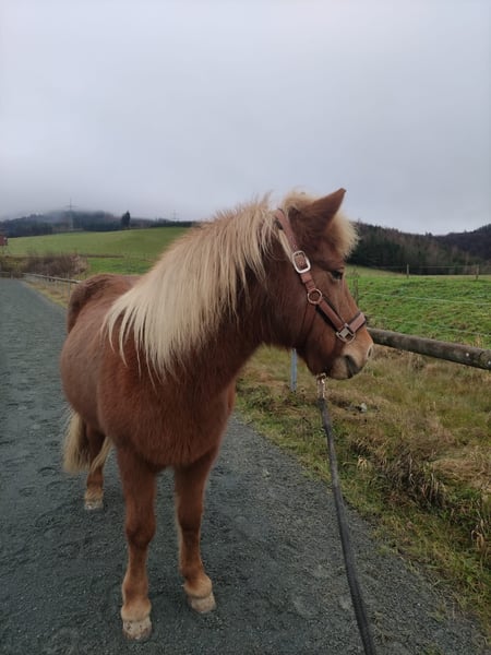 Sometimes, the heart chooses a new path... And so, an absolute sweetheart of a horse is for sale due to a step into competitive riding. A brief overview: - Name: Hyra❤️ (mare) - Height: approx. 13.5 hh (137 cm) - Date of Birth: June 7, 2008 (in top condition) - Looking for her forever home - Breed: Icelandic - Leisure horse - Low-level rider - Not a weight carrier, max. 70 kg - Small, sensitive soul💕 - No bucking, no rearing - She is familiar with dogs, tractors, road traffic, farrier, and trailer loading; she is very well-behaved in all situations. She is a bit cautious when loading into the trailer but does not rear or pull back. She stands perfectly still during transport. Personality🍀 Hyra, affectionately called "Mäuschen," is an absolute reliable partner. Once she trusts her human, she will stand by your side through thick and thin! (Provided her handler gives her confidence; otherwise, she can become unsure.) She loves going on rides and walks, remaining manageable even if she gets startled. She handles well alone and in groups and listens carefully to her rider. She also enjoys riding in the arena and on the riding hall, though she seems to prefer hacking out, where she quickly shows signs of boredom. Hyra always wants to do her best, so she needs subtle but consistent aids. Gaits✨ Hyra is a five-gaited horse (though I have only ridden her in four gaits). Her walk is steady but could be more expressive. Her trot is still a work in progress, as she has only recently learned to distinguish between trot and tölt, so her gait is not yet perfectly fluid. I cannot say much about her tölt, as I haven't ridden her in it often. Being a five-gaited Icelandic, she can only gallop uphill in the terrain. Overall, I haven't worked much on her gaits under saddle, as I mostly did ground work with her, which she enjoys and is very eager to learn. Health🐴 Hyra has never been ill or lame during our time together. She is regularly vaccinated and dewormed. She has a mild cough, but this has almost disappeared since moving to the open stable, and with regular exercise, she no longer coughs. She will be thoroughly checked before sale. An ultrasound is no problem.😊 What we wish for Hyra🍀❤️ We are looking for a loving person who will give her the attention and affection she deserves. Hyra is a sensitive little mare, so we hope her new owner is empathetic and respects her boundaries. Therefore, she should only go to an experienced horse person. Additionally, we prefer someone who values quality time with her—such as groundwork and hacking—more than her gait. She loves those activities above all else❤️ We will only rehome her to an open stable with other Icelandic friends, as she is currently happy there. Hyra needs a consistent handler, as changing riders or small children cause her stress! No riding school or lesson programs, please!!! Hyra is sold with full tack: saddle, cooler, grooming supplies, tack box, etc. P.S.: She is not currently in training, so trial riding is not possible. Videos can be sent upon serious interest. Hyra is not a rescue horse, and we only wish the best home for her❤️ Dealers, breeding farms, and riding schools are not preferred.