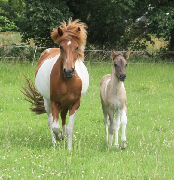 Very beautifully marked mouse dun pinto mare. She is very sweet and easy to handle. She shows a lot of tölt as well as a nice trot. We are happy to answer any further questions via email or WhatsApp at 01722846485.