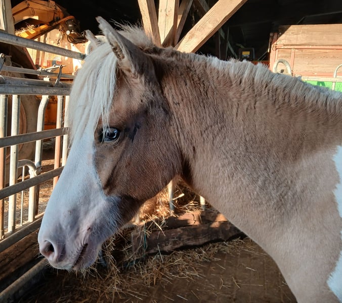 Ich gebe meine Braunfalbwindfarbscheckstute aus 2023 in geeignete Hände bevorzugt in Maritime Nähe zu günstigem Preis ab. Leider hat sie sich dieses Jahr angefangen zu Scheuern und sucht daher einen anderen Platz entweder Mückenärmer oder wo man mehr Zeit für ihre aufwändigere Pflege hat. Aktuell ist noch nicht ersichtlich ob es nur ein wachstumsbedingter Mangel, oder eine Stressbedingte Reaktion ist oder Dauerhaft bleibt. Aktuell wird sie nach einer Kur zur Stärkung des Immunsystem vom TA weiter behandelt. Eltern und Großeltern wie auch Halbgeschwister sind Ekzemfrei, daher nicht ersichtlich warum und woher. Sie sollte dennoch nicht für Zuchtzwecke genutzt werden. Mit Ekzemdecke stand sie relativ Symptomfrei, diese kann mitgegeben werden. Sie ist mit ihren zwei Jahren aktuell mindestens 135 Stm und gut entwickelt, natürlich noch nicht ausgewachsen. Vom Charakter total freundlich durchgechillt das potentielle spätere absolut brave Familien -Freizeitverlasspferd mit Option auf Kurse, Waderritte und mehr. Zeigt Freilaufend klare sicher vorhandene Grundgänge mit viel Raumgriff und guten Bewegungen. Tölt ist im Übergang manchmal zu sehen und mit guter Veranlagung vorhanden. Sie hat volle Papiere und ihre Extravagante Farbe ist via Gentest bestätigt. Sie ist ansonsten gesund und unauffällig , wird von Geburt an regelmäßig entwurmt, Hufgepflegt, ist gegen Tet. und Infl. geimpft und steht 24/7 auf Futter mit Mineralversorgung. Jungpferdemäßig gehändelt ist sie absolut brav im Umgang und ist auch Hufpflege - sowie Verladefromm. Festpreis Bei echtem Interesse kann sie gerne angeschaut und Kennengelernt werden, die Fotos sind von diesem Jahr, die letzten sind die aktuellsten, die Mähne wurde kurz geschnitten da sie total zerrupft war. Verkauf nur innerhalb EU.