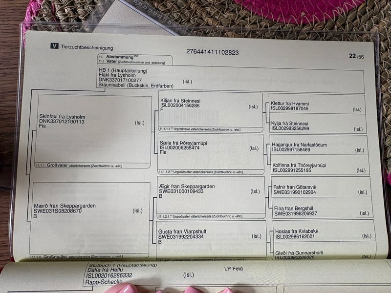 Ursprünglich hatten wir vor, eine Hobbyzucht aufzubauen, haben uns inzwischen jedoch umentschieden. Aus diesem Grund sucht unsere Isländerstute Dolly nun ein passendes neues Zuhause. Dolly ist seit zwei Jahren bei uns, altersgerecht gebaut und entwickelt sich altersgemäß sehr gut. Sie ist ein Braun-Mehrfachschecke mit wunderschönen kleinen Knopfaugen, passend zu ihrem kleinen schmalen Kopf. Dolly verfügt zudem über eine schöne und dichte Mähne, der Schweif ebenso. Im Umgang zeigt sich Dolly sehr menschenbezogen, lieb und unkompliziert. Sie sucht aktiv den Kontakt zum Menschen, kommt zuverlässig, wenn man sie ruft, und ist halfterführig. Der Schmied wird regelmäßig alle 8–12 Wochen vorgestellt, die Hufpflege ist für sie problemlos. Auch Tierarztbesuche verlaufen ruhig und entspannt. Dolly ist vollständig geimpft und erhält regelmäßig Mineralfutter sowie Fohlenmüsli. Im Sommer stand sie 24 Stunden auf der Weide, was sie sehr gut verträgt. Aktuell wird sie rund um die Uhr mit Heu versorgt. Bisher hatte Dolly noch keinen Kontakt zu Hengsten. Wir wünschen uns für Dolly ein liebevolles Zuhause, in dem sie weiterhin altersgerecht gefördert wird.