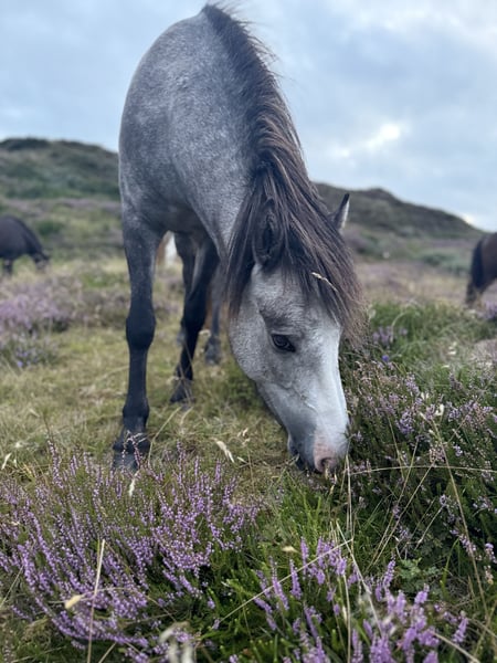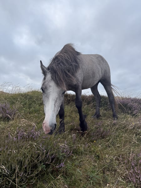 Zum Verkauf steht diese süsse, kleine und wunderschöne Islandpferdestute Skýla frá Nordkap, Jahrgang 2024. Skýla lebt aktuell in Dänemark, wo sie in freier Natur mit gleichgesinnten Jungpferden aufwächst. Trotz der naturnahen Aufzucht ist sie extrem menschenbezogen – sie kommt sofort auf einen zu, läuft einem hinterher wie ein kleiner Hund 🐾, ist halfterführig und verladefromm. Charakterlich ist Skýla ein absoluter Schatz: 🧠 klar im Kopf, 😌 sehr ruhig, 🚫 völlig angstfrei. Sie ist zwar nicht die Grösste, überzeugt dafür mit einem schönen, stabilen Fundament. Im Freilauf zeigt sie bereits Tölt, einen sehr schwungvollen Trab sowie einen tollen Galopp. Farbe: Grauschimmel mit blauen Augen – ein echter Blickfang ✨ Dank ihrer sehr guten Abstammung ist sie auch hochinteressant für die Zucht. Skýla ist 100 % gesund und lebte bisher ausschliesslich draussen. ☀️ Sie kann den Sommer noch in Dänemark zur weiteren Aufzucht bleiben 🚚 oder problemlos nach Deutschland, Österreich oder in die Schweiz ausreisen – hierbei helfe ich sehr gerne. Skýla ist ein richtiges Schmuckstück: ein außergewöhnlicher Charakter, schöne Gänge und beste Gesundheit vereinen sich hier in einem jungen Pferd mit ganz viel Herz. 💶 Preis: 5.000 € ⚠️ Wird nur verkauft, wenn wirklich alles zu 100 % passt.