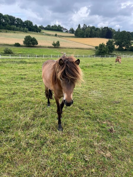 Zum Verkauf steht eine wunderschöne, vierjährige Islandpferd-Stute mit feinem Charakter und sehr guter Grundveranlagung für alle fünf Gänge. Schon jetzt zeigt sie im natürlichen Bewegungsablauf Töltansätze und beeindruckt durch elastische, taktreine Bewegungen. Sie kennt das Putzen, Hufe geben und befindet sich im ersten Bodenarbeitstraining. Dabei zeigt sie sich stets aufmerksam, lernwillig und motiviert. Menschen gegenüber ist sie freundlich und aufgeschlossen, im Umgang mit anderen Pferden sozial und nicht dominant – eine angenehme Partnerin in jeder Herde. Diese Stute bringt alles mit, was man sich für eine vielseitige Zukunft im Freizeit- oder späteren Reitbetrieb wünscht. Mit der richtigen Ausbildung wird sie sicher zu einem zuverlässigen und charakterstarken Reitpferd heranwachsen.