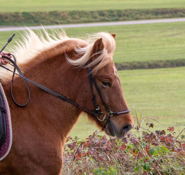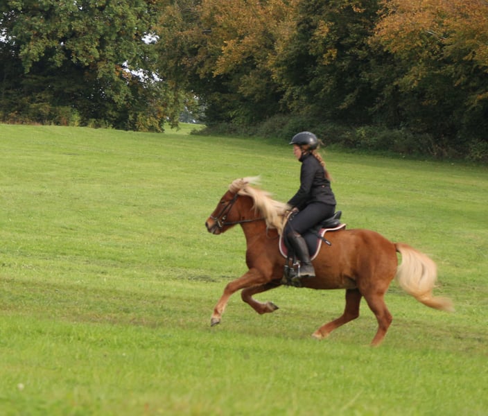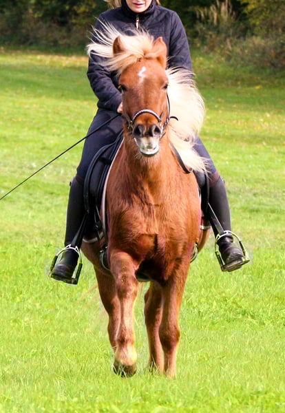 Zum Verkauf steht die 4,5 jährige, 5gängige Islandstute Maistjarna. Sie ist deutsch gezogen. Mit ihrem stimmigen, stabilen Gebäude, einer tollen Oberlinie und ihrer wunderschönen Farbe, ist sie ein echter Hinkucker. Auch ihr Charakter ist eine 12/10! Körperlich ist sie nicht die Größte, fühlt sich aber an wie ein "richtiges Pferd". Ich schätze sie auf ca. 1,37m, wobei sie aktuell noch wächst! Stabil gebaut! In der Herde ist sie absolut unkompliziert und eher rangniedrig. V: Krani frá Hofi Sie ist erst seit kurzem (Ende August) unter dem Sattel und begeistert seit dem 1. Training mit ihrer unkomplizierten, lerwilligen Arbeitseinstellung. Die Stute wird auf dem Platz und im Gelände (auch alleine!) aktuell 4gängig geritten. Die Gänge sind problemlos abrufbar Sie zeigt sich gut ausbalanciert, mit viel Takt und Fluss in allen Gangarten. Ein absolutes Sofa! Besonders viel Freude bereitet ihr endloser Tölt. Diesen zeigt sie, trotz der sehr kurzen Zeit unter dem Sattel, bereits problemlos am losen Zügel (siehe Bilder). Maistjarna verfügt über mittleres Temperament, will immer gefallen und ist absolut kopfklar! Auch für schwächere Reiter geeignet. Geht brav mit Kindern an der Longe oder Spazieren. Aktuell ist sie UNBESCHLAGEN und zeigt bereits, dass da noch ganz viel Luft nach oben ist! Wir konnten hier keinerlei Unarten festellen. Maistjarna zeigt keine Anzeichen von Ekzem. Sie ist Tetanus und Influenza geimpft Sie lernt alles kennen was ein junges Pferd kennen muss : -Verladen -Ausschneiden -Kühe -Schafe -Hunde -Kinder -Longieren -Handpferdereiten -Stangen -Doppellonge Maistjarna hat ein Herz aus Gold und verdient ein 5****Zuhause! Ob für die Zucht (hatte bereits 1 Fohlen), Turnier oder einfach endloses Durch-den-Wald-tölten, Maistjarna deckt alles ab! Wer einen kopfklaren Allrounder mit viel Herz sucht, ist hier genau richtig. Vorbei kommen und verlieben! Ich wünsche mir für sie ein gutes Zuhause, in dem sie geschätzt wird! Bei weiterer Ausbildung steigt der Preis.