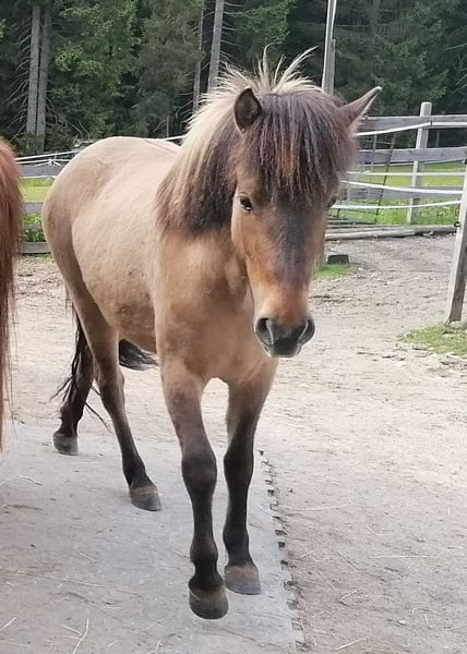 Verkaufe liebe Islandpferdestute Zum Verkauf steht eine wunderschöne Islandpferdestute, geboren im Jahr 2022. Sie ist eine elegante Falbe mit einem zu erwartendem Stockmaß von 138 cm und somit perfekt für Freizeitaktivitäten geeignet. geht bereits als Handpferd mit und kennt Verkehr, Eisenbahn und alle üblichen Geräusche. Die Stute besticht durch ihr freundliches Wesen und ihre Bereitschaft, ihre Reiter zu begeistern. Ideal für Reiter, die ein junges, Pferd gerne selbst ausbilden möchten. Bei Interesse stehe ich gerne für weitere Informationen und eine Besichtigung zur Verfügung.