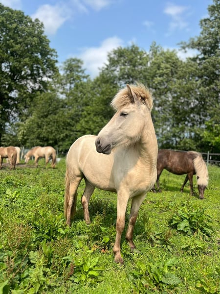 Stjarna by Seimur, daughter of Svana by Seimur & the well-known Kjarkur by Seimur. Stjarna is a very lovely, reserved young mare, with very nice, clearly separated gaits, probably 5 gaits. Her color is called Braunisabell (earth colors). Her character and character are impeccable, she lives with her colleagues in our large pastures from 1 to 4 years old with the young stallions. Stjarna also has a great pedigree and would be suitable for leisure, breeding and sport. More details via PN.