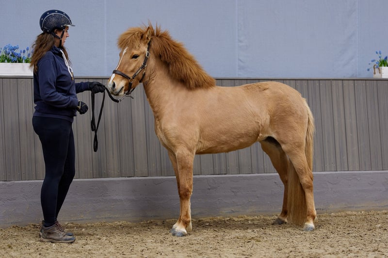 ❗️Natural Tölt mare with a lot of rhythm and expression❗️ (Please read the entire text) Lilja von Skógahof (*2022) Sire: Máni frá Hrafnkelsstödum (8.0 in all gaits) Dam: Komma frá Midfelli 2 Lilja is a stylish five-gaited mare, with a lot of flow, rhythm, and high movements in all gaits. She is a chestnut palomino with tested bay (Aa). At just 3 years old, Lilja is already 1.40m tall and shows a lot of clear-rhythmed tölt at high speeds, a jumping canter, as well as very fast and secure pace. Her walk is extremely good and was rated 5/5 points as a foal. As a foal, she was evaluated with a total score of 7.99 (7.9 for conformation, 8.1 for character, and 8.0 for gaits!) ❗️❗️Since selling horses is currently really difficult, we are putting her online now. HOWEVER, she will only be released either in May 2026 WITH foal or at the end of 2026 WITHOUT foal❗️❗️ Currently, she is in foal for the end of April 2026. Lilja has a very sweet character, but she is a bit nervous when she is alone or when something new happens. She stands well in the trailer, with the farrier, and is regularly dewormed. We will only place her in the very best hands with Icelandic experience to a sensitive person. Location: 49832 Thuine She can be visited at any time. Upon request, she can also be made pregnant again by my stallion: Glæsir frá Hjardarholti (8.12), an isabel palomino pinto with blue eyes.