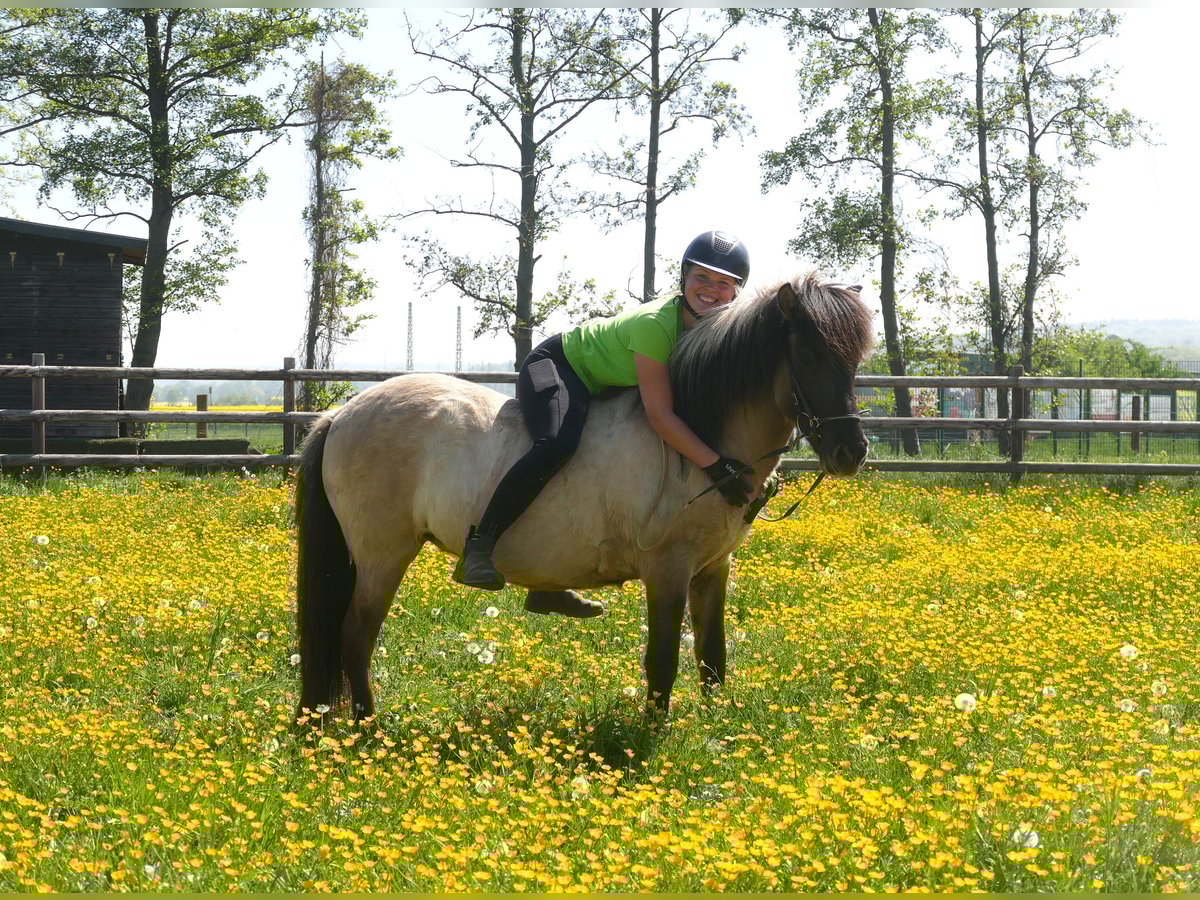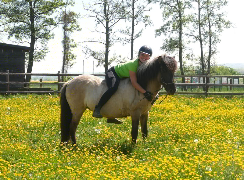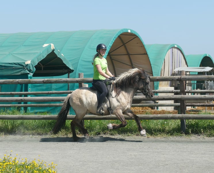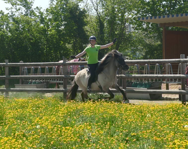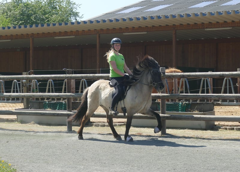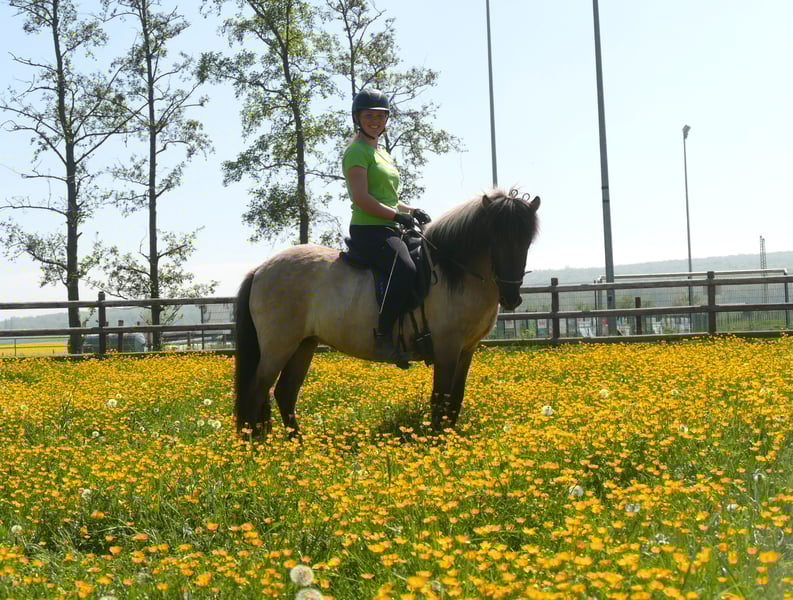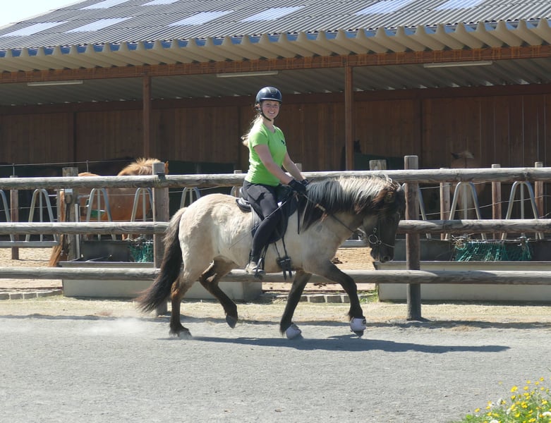 Jörð ist etwas klein- oder wie wir sagen würden auf das BESTE reduziert! *2021 / 130 cm Diese absolut unkomplizierte, süße, nervenstarke, verlässliche Mausfalbstute verspricht eins: Sorglose Ritte, Spaß, Erholung, Seele baumeln lassen. Jörð ist seit ca. 2 Monaten geritten und das absolut perfekte Jungpferd. Angst kennt sie nicht, töltet wie's Lottchen und ist eine coole Socke im Gelände. Trotz ihrer Größe deckt sie ganz gut ab - die Reiterin auf dem Bild ist 168 cm groß. Hier muss man nicht fragen "Für wen ist Jörð geeignet?" sondern eher "für wen nicht?".