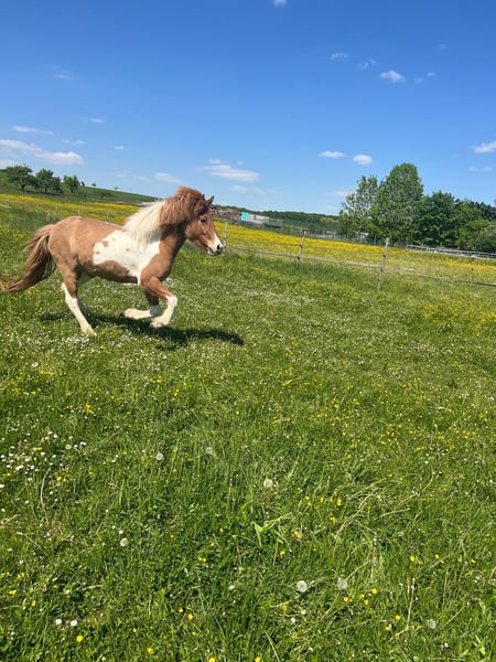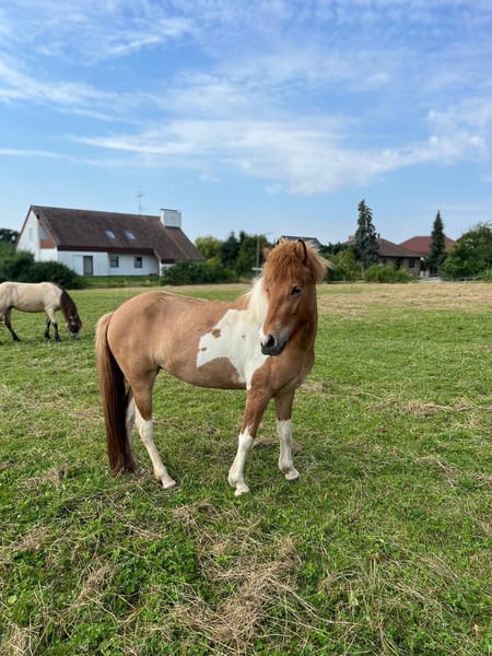 Lyfting vom Seebühl DE2021284594 Lyfting ist eine freundliche Fünfgangstute, die von Kindern, Hunden und Katzen umgeben, im Herdenverband aufgewachsen ist. Sie ist brav beim Hufschmied und lässt sich führen und verladen. Aus zeitlichen Gründen, muss ich sie leider abgeben. Fohlenprüfung: Exterieur: 7,90/ Charakter: 7,80/ Gänge und Bewegung: 7,60// Gesamt: 7,73 Lyfting hat leichtes Sommerekzem an Mähne und Schweif