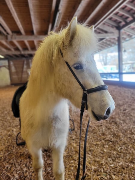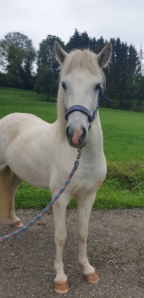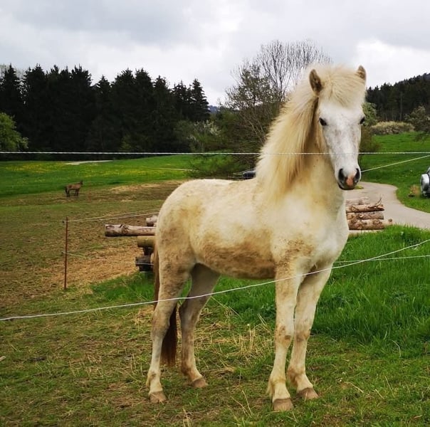 Zum Verkauf steht eine bald 5 jährige Schimmelstute (V: Steinar vom Isterbergerhof) die seit Dezember gearbeitet wird und durch ihre aufgeschlossene, freundliche Art & motivierte Mitarbeit besticht. Sie begegnet allem Neuem positiv & neugierig, lernt unfassbar schnell. Sie kennt bisher: Bodenarbeit, Longenarbeit, Reiten auf dem Platz, der Halle & im Gelände in Schritt, Trab und Galopp sowie als Handpferd mit zu laufen. Sie ist Fünfgängerin mit viel Tölt den sie bisher hauptsächlich an der Longe zeigt. Unter dem Sattel wird dieser bisher noch nicht gefördert. Ihr Galopp ist etwas gelaufen wird aber von Woche zu Woche besser gesprungen, ihr Schritt ist raumgreifend mit super Takt, ebenso ihr Trab . Blida hat mittleres, mit mehr Kraft und Ausdauer sicherlich gutes Temperament. Sie läuft gerne vorwärts, ist nicht träge oder triebig, ohne dabei hektisch oder unkontrollierbar zu sein. Blida ist lieb beim Hufschmied und ist Tetanus/Influenza geimpft. Auf Grund ihrer tollen Gänge könnten wir sie uns bei weiterer Ausbildung sowohl im Sport vorstellen als aber auch als Dauertölter für Wald und Wiese. Preis bis Ende Februar, danach steigt der Preis. Verkauf im Auftrag.
