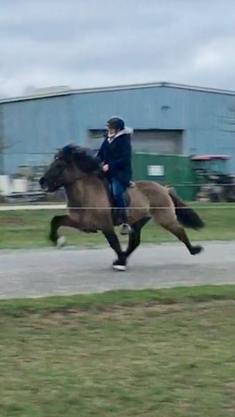 Wir verkaufen unsere Islandstute Svarta-Fina vom Birkenberg, geboren 2021. Sie bringt alles mit, was man sich wünscht: • Sehr gute Gangveranlagung und Top Charakter • Herausragende Abstammung - Mutter 2x WM für Frankreich, VM die legändere Passstute Nattrun • Sehr gutes Gebäude, aktuell 1,40m groß • Wird gerade angeritten und zeigt sich sehr einfach • Fein, fleißig aber entspannt bei neuen Dingen Fina hat das Zeug zu einem tollen Reitpferd mit ihrer entspannten Art und den guten Anlagen. Ihre Mutter Lineik von Asgard war sehr erfolgreich in Pass Rennen, Passprüfung, Fünfgang und Tölt Prüfungen. Zusätzlich war sie ein absolutes Verlasspferd im Gelände, beim Handpferdereiten und trotz ihrer extremen Schnelligkeit im Pass - jederzeit und in jeder Situation anzuhalten. Ihr Vater Náttar vom Mönchhof ist ein Sohn der legendären Passstute von Jens Füchtenschnieder Nattrun v. Troellastadir. Er hat die Optik eines kleinen Friesen mit extrem guten Grundgangarten und schönem Tölt. Leider hat Fina ein leichtes Ekzem. Sie stand aber mit Decke problemlos den ganzen Sommer draußen in der Herde. Trotzdem bietet sich daraus eine gute Gelegenheit, da sie deshalb weit unter Preis verkauft wird. Fina kann gerne bei uns am Hof bleiben oder auch weiter bei uns ausgebildet werden. (Trainer A, C). Preis steigt bei weiterer Ausbildung. Gangpferde Birkenhof 0151-67580759
