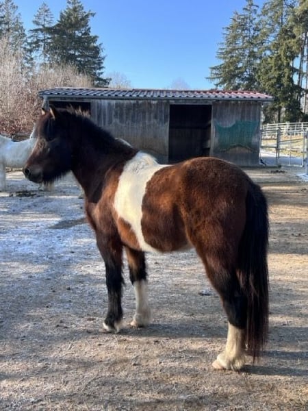 Brák ist eine 2021 geborene Islandpferd-Stute (Braun-Schecke) mit aktuell ca. 1,40 m Stockmaß (noch nicht ausgewachsen). Sie stammt aus hochwertiger Zucht und steht derzeit in Ulm. Altersgerecht befindet sich Brák mitten in der Ausbildung. Sie wurde schonend angeritten und kennt unter dem Reiter alle Gänge: Schritt, Tölt, Trab und Galopp. Rennpass ist bei ihr möglich, wird aktuell aber noch nicht gezielt und gesichert abgefragt. Sie arbeitet regelmäßig mit, lernt schnell und zeigt für ihr Alter schönes Gangpotenzial. Im Charakter ist Brák eine sehr liebe, verschmuste und menschenbezogene Jungstute. Sie ist neugierig, entdeckt gerne Neues und wirkt manchmal noch wie ein kleiner Träumer. Altersentsprechend lässt sie sich gelegentlich ablenken, bleibt dabei aber gut händelbar. Sie ist superlieb beim Hufschmied und Tierarzt und war bereits zweimal problemlos im Hänger unterwegs. Für ihre weitere Entwicklung wünschen wir uns einen erfahrenen, feinfühligen Menschen, der Freude daran hat, sie konsequent und liebevoll weiter auszubilden. Brák ist vollständig geimpft, regelmäßig entwurmt und ekzemfrei. Abstammung: Vater: Bliki frá Hjardarholti, FEIF-ID IS2006136481, FIZO 2014: 8,18. Mutter: Björg frá Ey I, FEIF-ID IS2009284728. Züchterin: Jana Füss. Papiere und weitere Infos zur Abstammung können bei Interesse gerne eingesehen werden. Verkauf ausschließlich in fördernde, liebevolle Hände als zukünftiges Freizeit- und Familienpferd. Preisvorstellung: 9.500 € VB. Weiteres Zubehör nach Absprache. Bei ernsthaftem Interesse sende ich gerne zusätzliche Fotos und Videos. Standort: Ulm