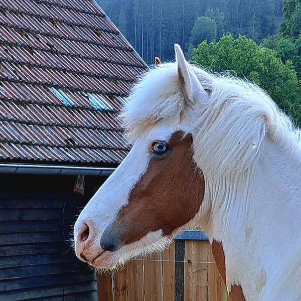 Gloría vom Holtdorftal ist eine knapp 5 jährige Isistute und momentan 1, 41 m groß. Sie ist am 01.05.2021 geboren. Sie kam im September 2024 mit einer weiteren Zuchtstute direkt vom Züchter zu mir. Sie war tragend für 2025. Sie ist dort auf großer Fläche im Herdenverband aufgewachsen und war nur halfterführig. Ich begann mit Ruhe die Jungpferdeausbildung und die Basisausbildung. Sie bekam am 14.05.2025 ein sehr großes, gut gebautes Hengstfohlen. Die Geburt hat sie ganz toll gemacht und man durfte auch von Anfang an an ihr Fohlen. Januar 2026 wurde das Fohlen abgesetzt, hat sie super souverän gemeistert. Sie wurde schonend von mir im Sommer 2025 gebisslos angeritten. Sie kennt in der Bodenarbeit die Arbeit am Kappzaum, an der Wassertrense, Longenarbeit, Equikinetik, Stangenarbeit. Sie kann am Kappzaum sowie an der Trense Schenkelweichen, Schulterherein. Travers sind wir langsam am beginnen. Kleine Zirkustricks machen ihr super viel Spaß. Freiarbeit macht sie gut und sehr fein. Unter dem Sattel geht sie super entspannt ins Gelände, auch wenn ihr Fohlen zuhause geblieben ist. Stute und Fohlen konnte man immer zum Arbeiten toll voneinander trennen. Wir gehen überwiegend alleine ins Gelände in allen Gangarten. In der Gruppe kann sie sehr gut hinten bleiben und lässt sich stets durch einen Pfiff anhalten auch wenn andere Pferde weiter galoppieren. Sie geht unter Flatterband durch, über Planen. Große Arbeitsmaschienen, Autos, Hunde, Wanderer war bis jetzt alles kein Problem. Unser Reitplatz ist sehr klein, da geht sie Schritt und Trab Bahnfiguren und Anfänge vom Seitwärts. Sie hat ganz tolle bequeme und flüssige Gangarten. Ich lege großen Wert auf eine korrekte klassische Ausbildung. Sie hat einen schönen raumgreifenden Trab mit schöner Halsung. Der Galopp hat eine schöne Aufwärtstendenz. Bei mehr Kraftzuwachs wird man diesen schön versammeln können. Der Schritt ist fleißig, aber nicht über Tempo und keine Passverschiebung. Auf der Wiese und unter dem Sattel kann sie schon schöne Strecken im Tölt halten. Sie steht bei mir im Winter in einem Offenstall mit Wiese und 24h Zugang zu Heu. Im Sommer 24 h auf großen Wiesen. Sie ist absolut freundlich zu allen Pferden egal ob in der Herde oder zu fremden Pferden. Sie ist regelmäßig entwurmt, geimpft und alle 6-8 Wochen werden die Hufe bearbeitet. Sie läuft hier barfuß und das auch gut im Gelände. Bei größeren Runden hat sie vorne Schuhe an. Hinten hat sie bis jetzt keinen Schutz gebraucht. 18 12.2025 wurden die Zähne gemacht. Protokoll vorhanden, Tierärztin super zufrieden. Gloría ist im Stutbuch I eingetragen. Sie ist ein sehr sensibles, arbeitswilliges Jungpferd. Du solltest dich mit Jungpferdeausbildung auskennen oder Unterstützung haben. Bei Interesse und Fragen sehr gerne per Whats App melden, 015757999782.