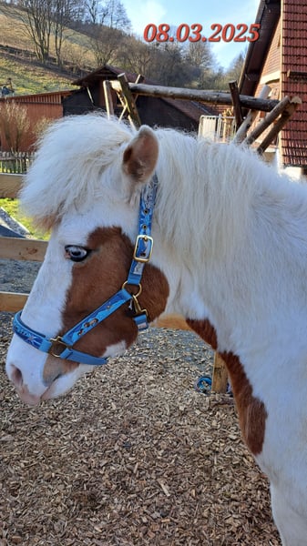 Gloría vom Holtdorftal ist eine knapp 5 jährige Isistute und momentan 1, 41 m groß. Sie kam im September 2024 mit einer weiteren Zuchtstute direkt vom Züchter zu mir. Sie war tragend für 2025. Sie ist dort auf großer Fläche im Herdenverband aufgewachsen und war nur halfterführig. Ich begann mit Ruhe die Jungpferdeausbildung und die Basisausbildung. Sie bekam am 14.05.2025 ein sehr großes, gut gebautes Hengstfohlen. Die Geburt hat sie ganz toll gemacht und man durfte auch von Anfang an an ihr Fohlen. Januar 2026 wurde das Fohlen abgesetzt, hat sie super souverän gemeistert. Sie wurde schonend von mir im Sommer 2025 gebisslos angeritten. Sie kennt in der Bodenarbeit die Arbeit am Kappzaum, an der Wassertrense, Longenarbeit, Equikinetik, Stangenarbeit. Sie kann am Kappzaum sowie an der Trense Schenkelweichen, Schulterherein. Travers sind wir langsam am beginnen. Kleine Zirkustricks machen ihr super viel Spaß. Freiarbeit macht sie gut und sehr fein. Unter dem Sattel geht sie super entspannt ins Gelände, auch wenn ihr Fohlen zuhause geblieben ist. Stute und Fohlen konnte man immer zum Arbeiten toll voneinander trennen. Wir gehen überwiegend alleine ins Gelände in allen Gangarten. In der Gruppe kann sie sehr gut hinten bleiben und lässt sich stets durch einen Pfiff anhalten auch wenn andere Pferde weiter galoppieren. Sie geht unter Flatterband durch, über Planen. Große Arbeitsmaschienen, Autos, Hunde, Wanderer war bis jetzt alles kein Problem. Unser Reitplatz ist sehr klein, da geht sie Schritt und Trab Bahnfiguren und Anfänge vom Seitwärts. Sie hat ganz tolle bequeme und flüssige Gangarten. Ich lege großen Wert auf eine korrekte klassische Ausbildung. Sie hat einen schönen raumgreifenden Trab mit schöner Halsung. Der Galopp hat eine schöne Aufwärtstendenz. Bei mehr Kraftzuwachs wird man diesen schön versammeln können. Der Schritt ist fleißig, aber nicht über Tempo und keine Passverschiebung. Auf der Wiese und unter dem Sattel kann sie schon schöne Strecken im Tölt halten. Sie steht bei mir im Winter in einem Offenstall mit Wiese und 24h Zugang zu Heu. Im Sommer 24 h auf großen Wiesen. Sie ist absolut freundlich zu allen Pferden egal ob in der Herde oder zu fremden Pferden. Sie ist regelmäßig entwurmt, geimpft und alle 6-8 Wochen werden die Hufe bearbeitet. Sie läuft hier barfuß und das auch gut im Gelände. Bei größeren Runden hat sie vorne Schuhe an. Hinten hat sie bis jetzt keinen Schutz gebraucht. 18 12.2025 wurden die Zähne gemacht. Protokoll vorhanden, Tierärztin super zufrieden. Ich habe sie als Zuchstute im Stutbuch 2 eintragen lassen. Sie ist ein sehr sensibles, arbeitswilliges Jungpferd. Du solltest dich mit Jungpferdeausbildung auskennen oder Unterstützung haben. Bei Interesse und Fragen sehr gerne per Whats App melden, 015757999782.