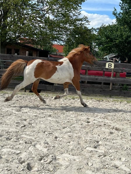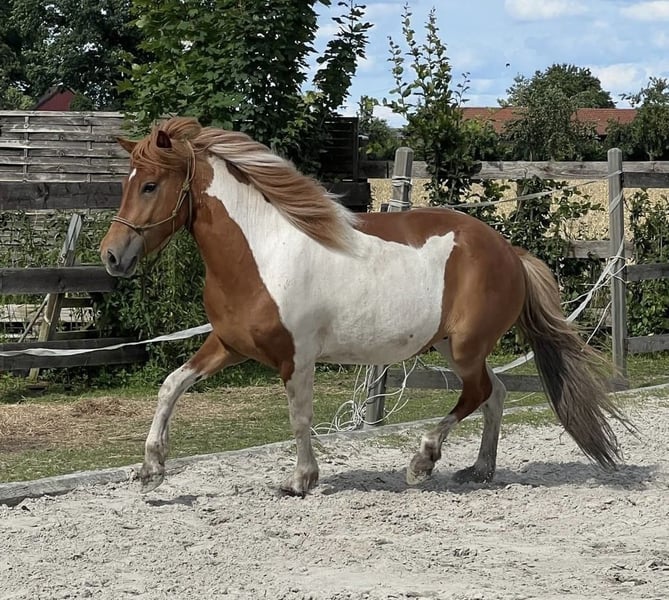 Very beautiful, lovely, sociable mare. Lokkadis has already been broken in and is really a very pleasant riding horse. With further training she will certainly become a very good family horse with a nice size of approx. 1.40 m. She is possibly in foal to the stallion Kaspar vom Hexchen (wind colored pinto). More horses for sale on our homepage www.roettgershof.jimdo.com We are at your disposal for further questions via WhatsApp or email.