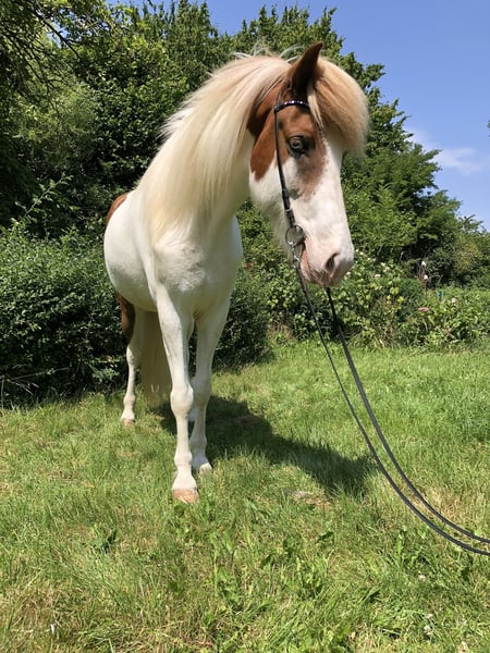 Afródíta ist eine auffallend große (Stm. 147 cm) und talentierte 6j. Fünfgangstute aus deutscher Zucht. Sie hat eine gleichmäßige Gangveranlagung und viel Tölt und bringt dabei ein ansprechendes Bewegungspotenzial mit. Dies macht sie nicht nur als luxuriöses Reitpferd interessant, sondern sie wäre auch geeignet als Turnierpferd für einen (jungen) Reiter mit Ambitionen. Afródíta ist ein ausgesprochen leichtrittiges Pferd, das schon gut an den Hilfen steht und die Hilfen sehr fein annimmt. Sie ist ganz leicht in der Hand und reagiert sensibel. Sie hat ein gut mittleres Temperament, ist dabei mit dem kleinen Finger (oder den Gedanken) zu reiten und möchte ihrem Reiter unbedingt gefallen. Sie arbeitet immer ganz motiviert mit ihrem Menschen und lässt sich sehr schon auf dem Viereck dressurmäßig reiten. Auf der Bahn macht das Gangtraining mit ihr viel Spaß und im Gelände ist sie aufmerksam und bleibt dabei immer bei ihrem Reiter. Sie ist bisher viergängig geritten worden. Sie hat viel Tölt mit guter Bewegung und schon sehr konstanter Form, die Grundgangarten sind ebenfalls sehr gut, wobei der Galopp durch das vermehrte Tölttraining derzeit etwas schwächer ist. Als sie noch nicht getöltet ist, konnte sie auf Anhieb auf dem Zirkel galoppieren, insofern sind wir uns sicher, dass das bald wieder zurück kommt. Der Trab hat guten Takt und Raumgriff, hier muss sie noch lernen, sich etwas mehr fallen zu lassen. Áfródíta benötigt aufgrund ihrer feinen Reaktionen einen einfühlsamen Reiter mit einem geschmeidigen Sitz und einer feinen Hand. Sie ist zu 100 % brav, würde aber die Einwirkung eines unsicheren Reiters oder unruhigen Sitzes nicht verstehen. Traumhaft ist sie für denjenigen, der ein fein zu reitendes Pferd zu schätzen weiß. Sie ist kerngesund, durchgeimpft, ekzemfrei und Zähne sind gemacht - ein Pferd zum losreiten und weiter fördern! Sie hatte 2023 unser jahrgangsbestes Fohlen, das Elite beurteilt wurde und das jetzt gut zweijährig bereits 143 cm groß ist.